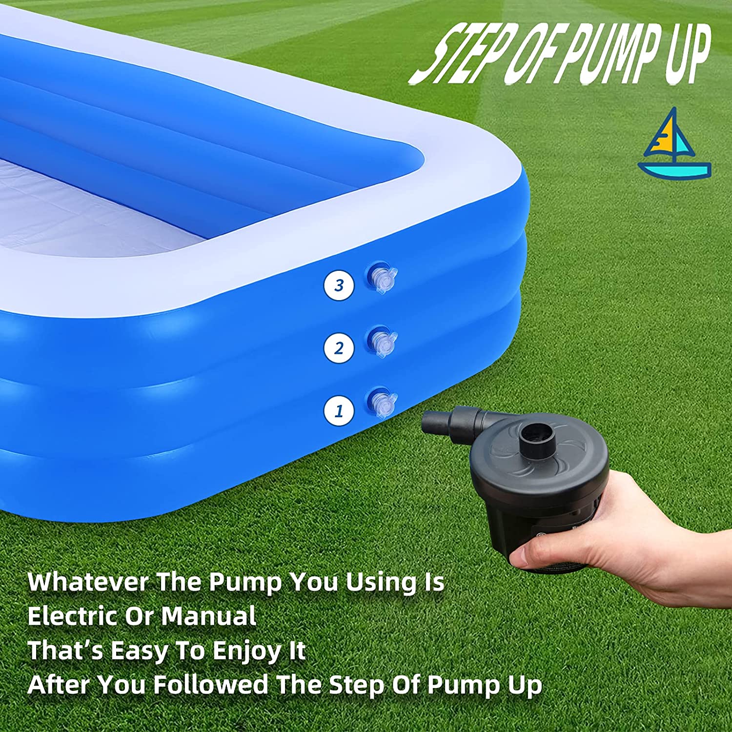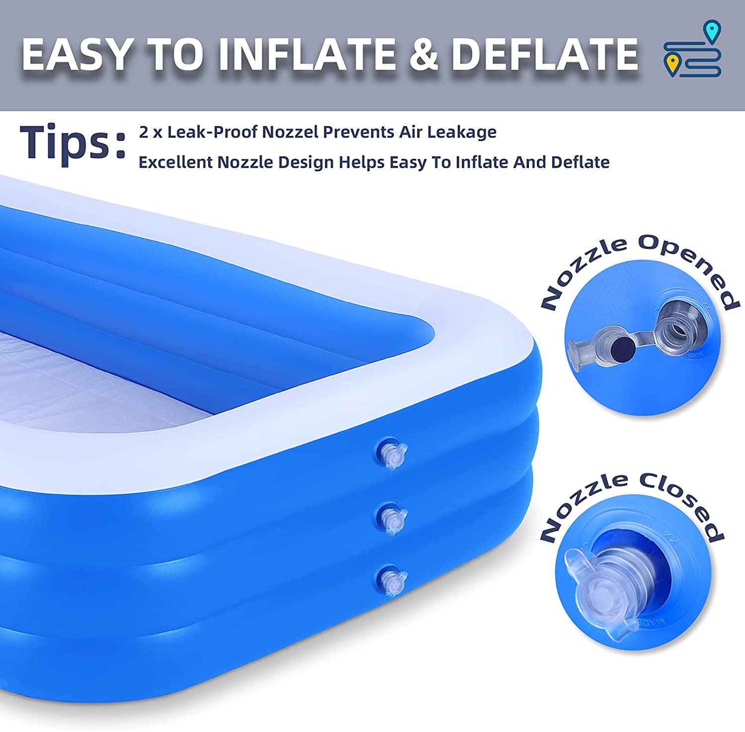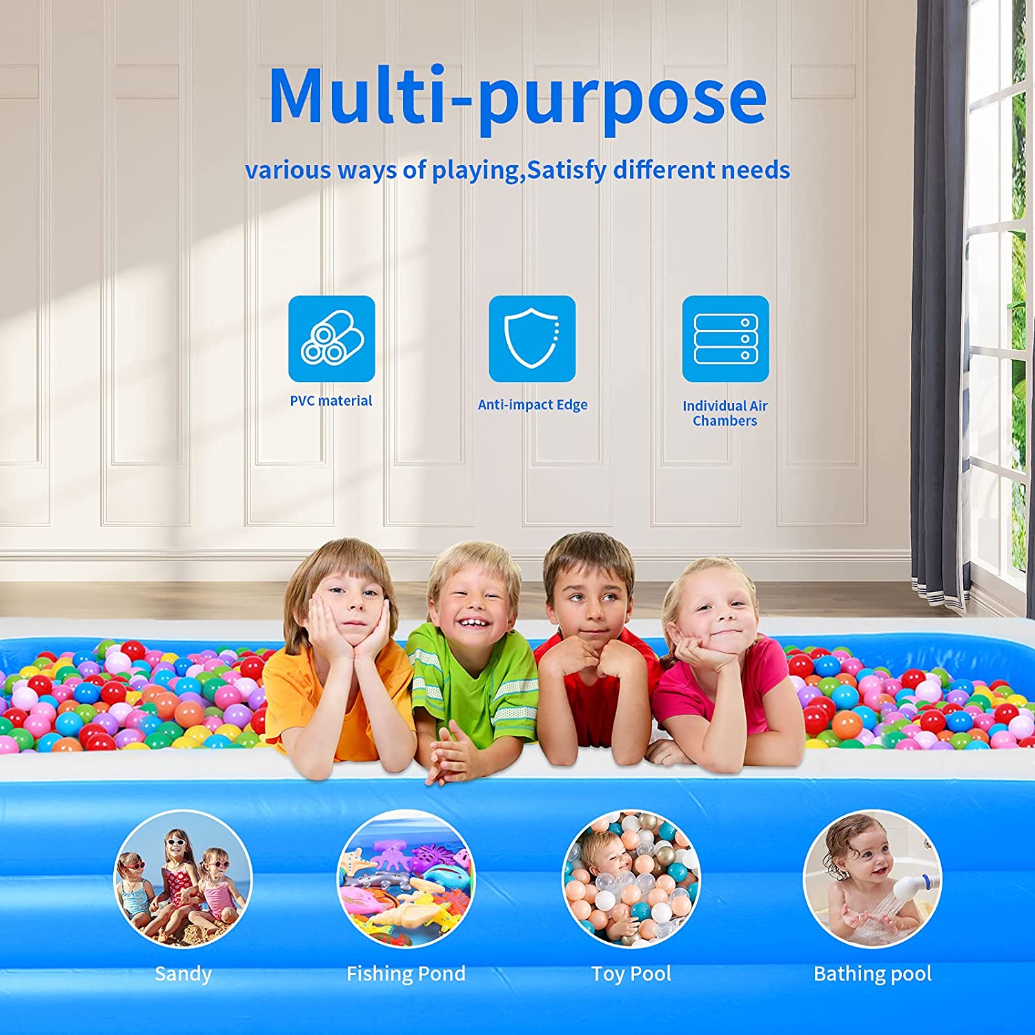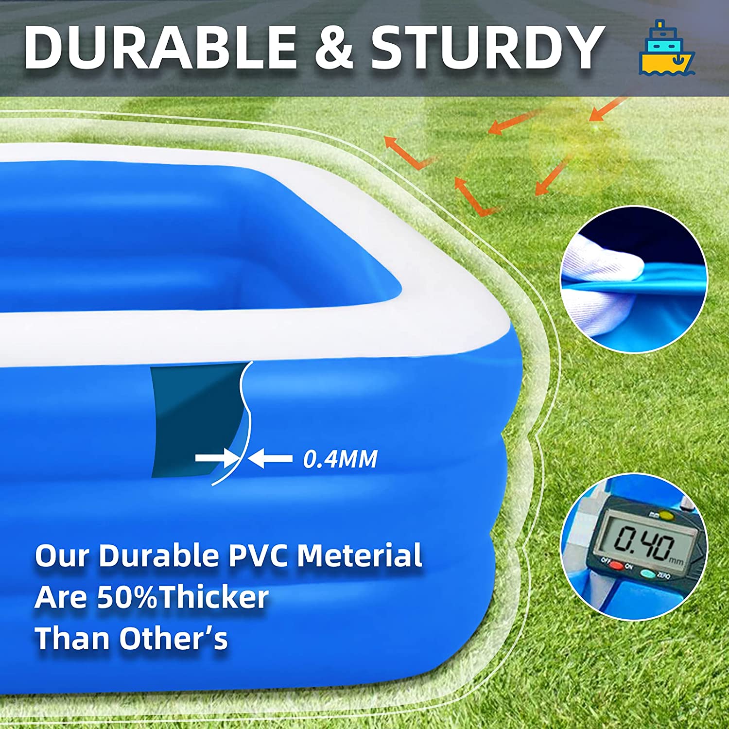 Inflatable Swimming Pool. 120 x 72 x 22 inches Family Full-sized Lounge Pool. Rectangular Blow Up Pool for. Kiddie. Toddlers. Adults