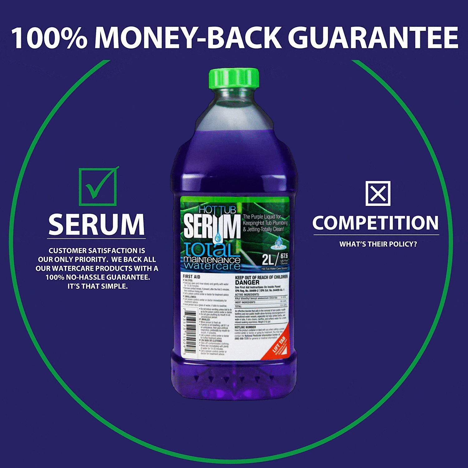 Hot Tub Serum - Total Maintenance Water Care - Hot Tub. Jetted Tub. Spa. Jacuzzi. Bathtub & Swimming Pool Cleaner - 24 Weekly Doses (2 Liter)