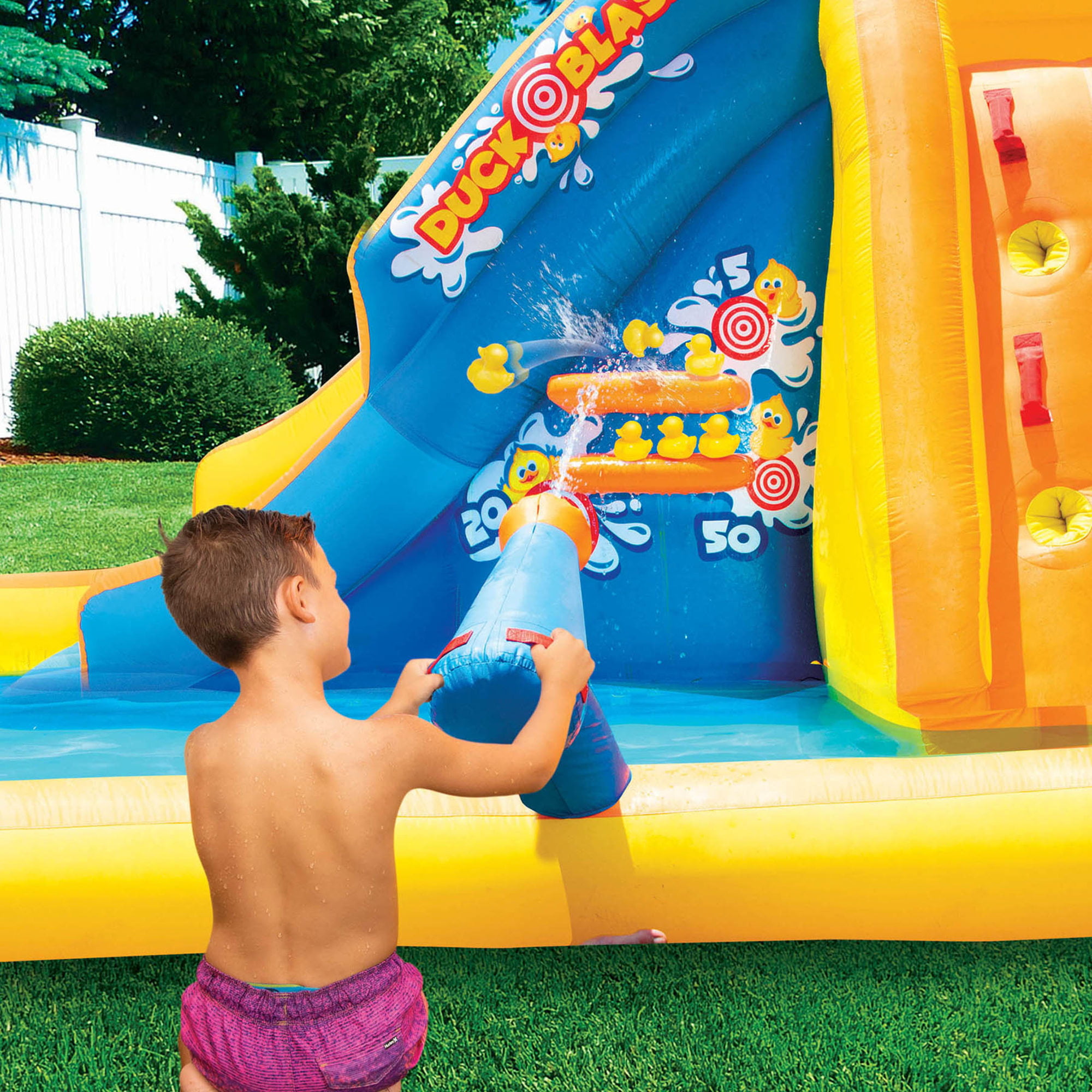 Banzai Inflatable Duck Blast Water Park - Water Blast Cannon & Inflatable Duck Rider