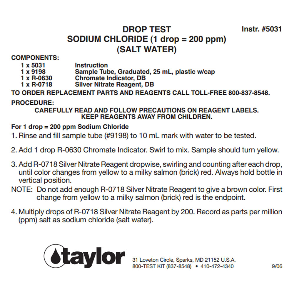 Taylor K2005 Pool Hardness pH DP Test Kit & K-1766 Salt Water Drop Test Kit