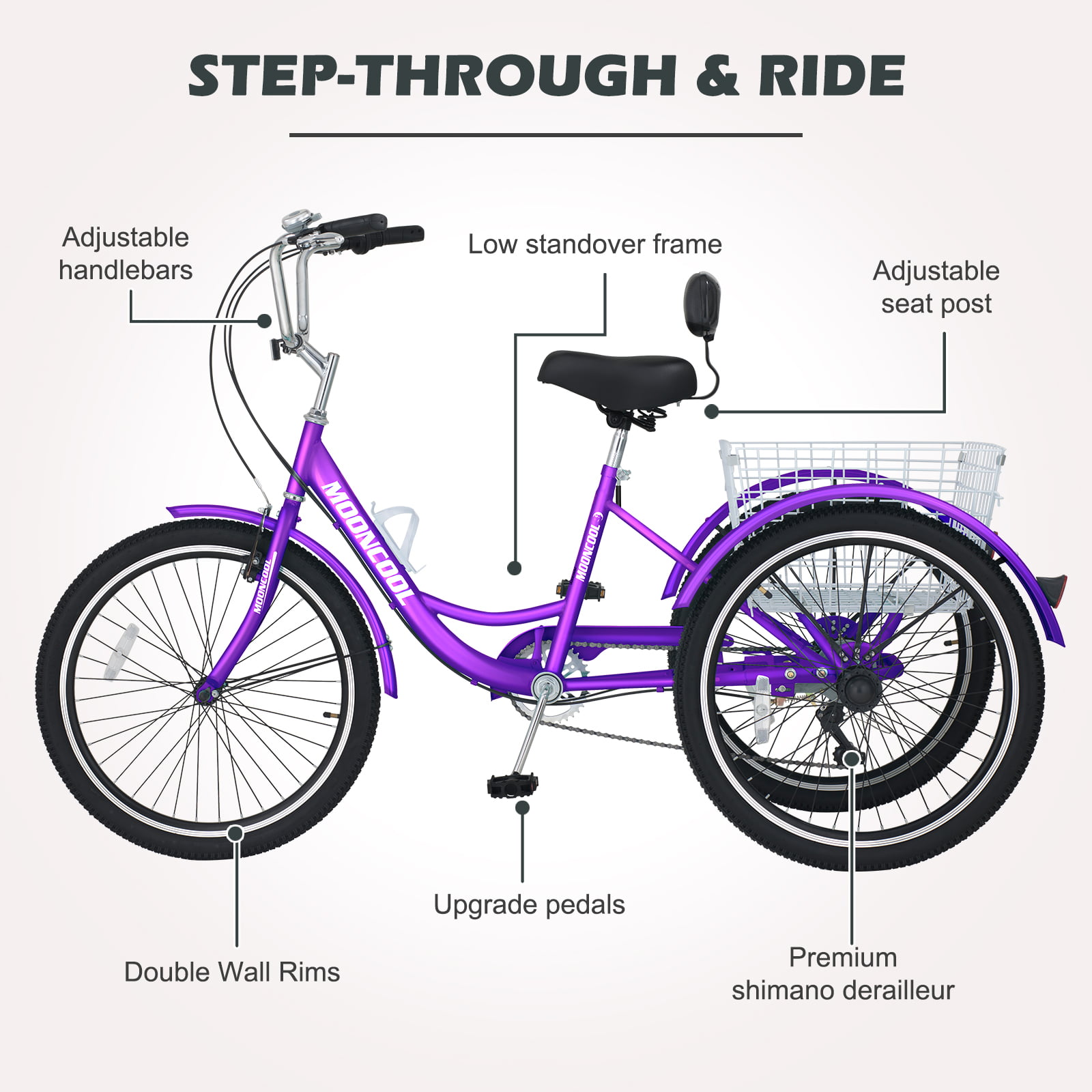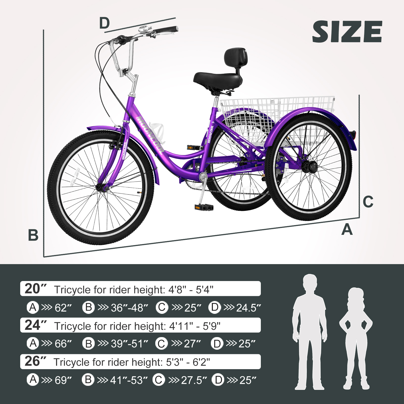 Docred Adult Tricycles 7 Speed 26 Inch Three Wheel Bike Cruiser Trike for Men/Women/Seniors