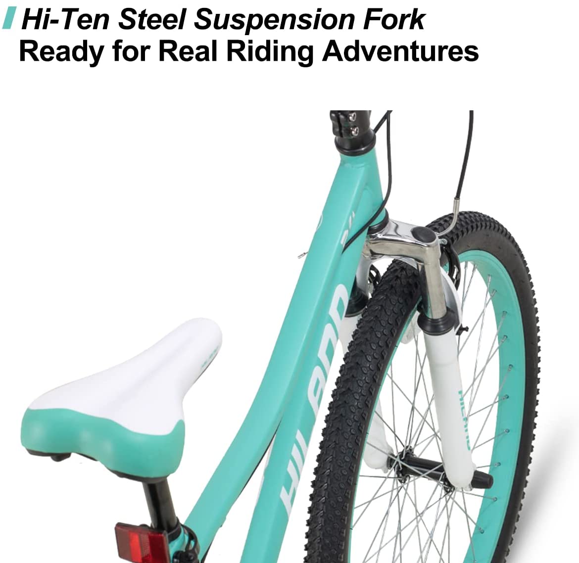 Hiland 24 inch Mountain Bike Shimano 7 Speeds for Teenager with Suspension Fork. Mint Green