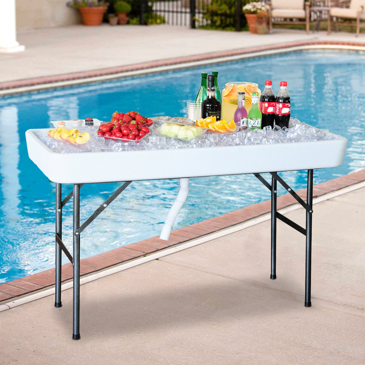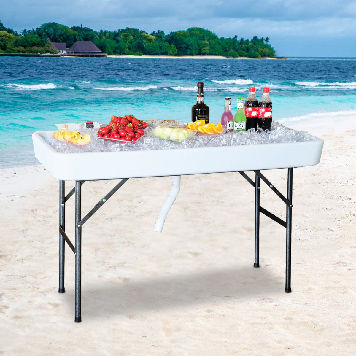 Rectangular Folding Ice Table with Drain and Matching Skirt