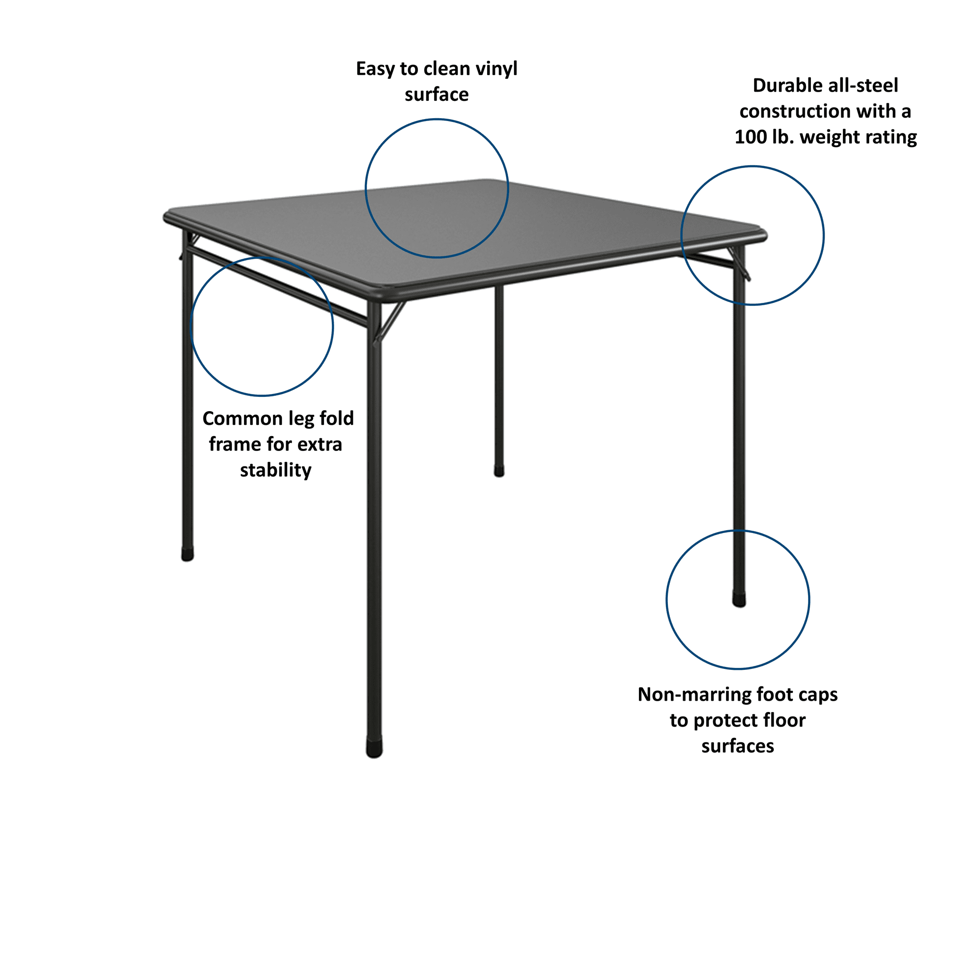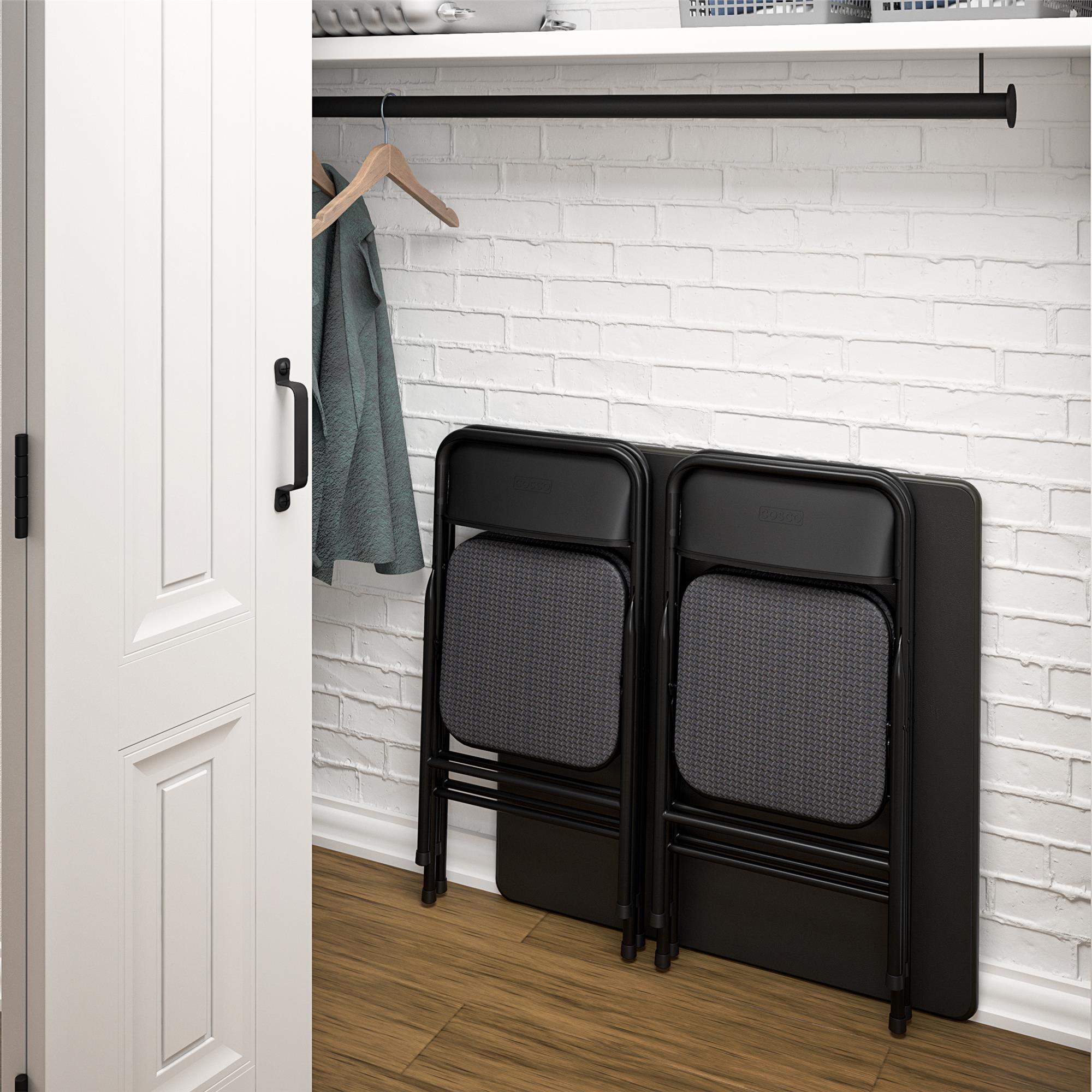 COSCO Premium 5-Piece Fabric Folding Chair & Classic 34″Vinyl Card Table Set. Black