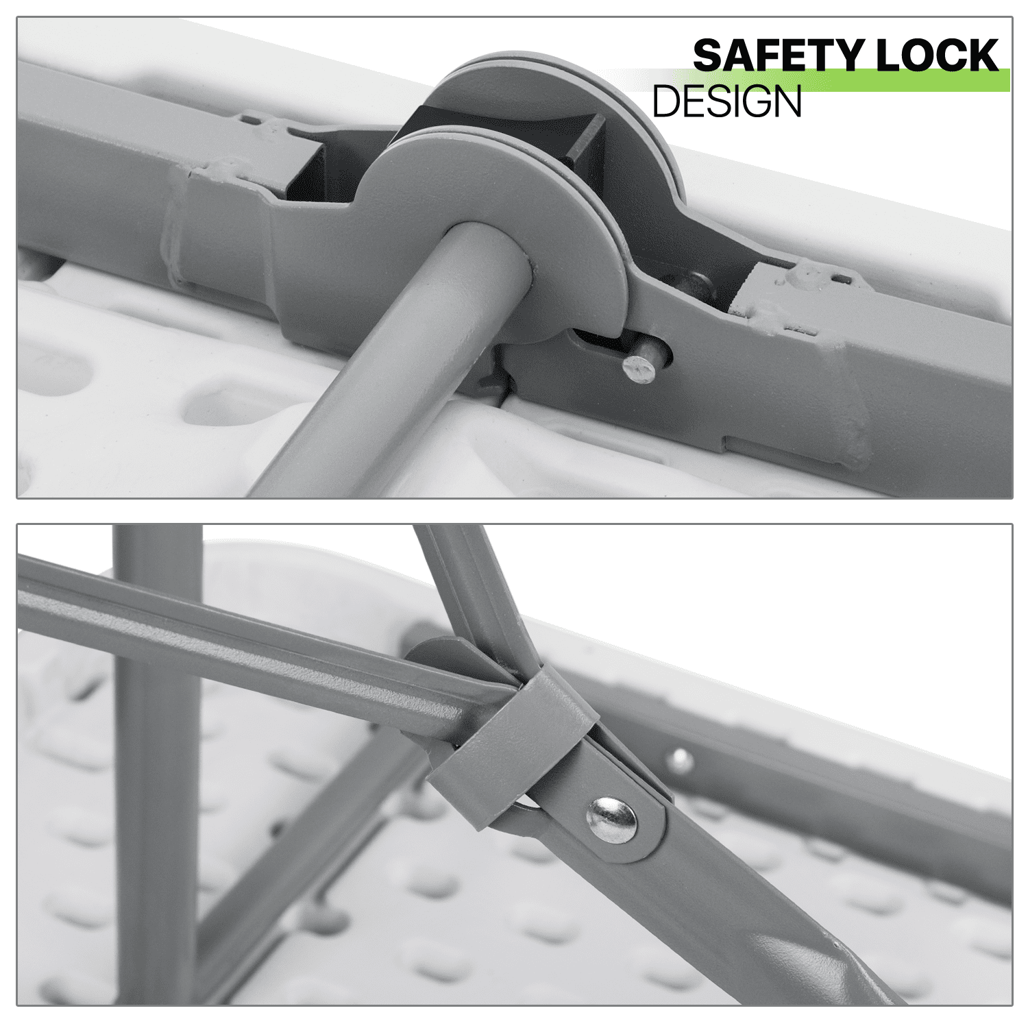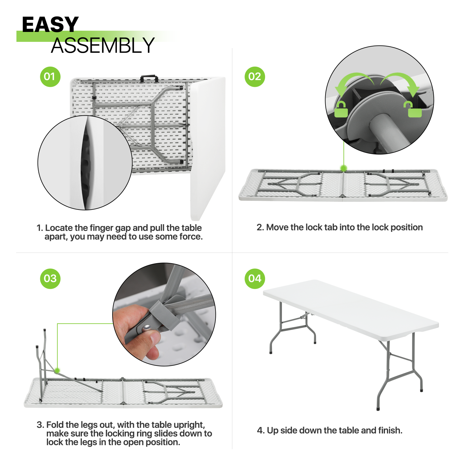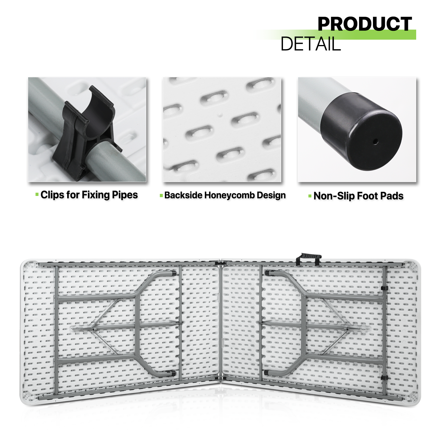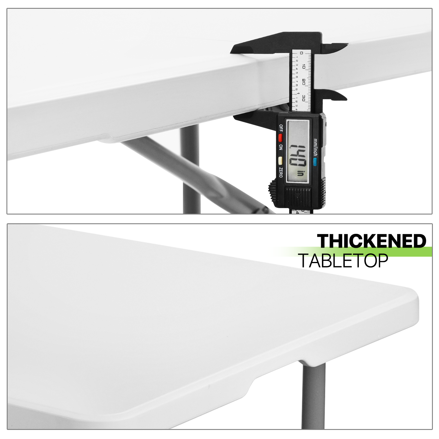 Magshion 8Ft Foldable Heavy Duty Table. Indoor Outdoor Portable Plastic Picnic Desk w/Steel Legs and Handle. White