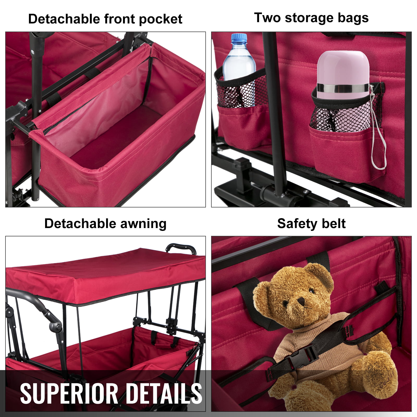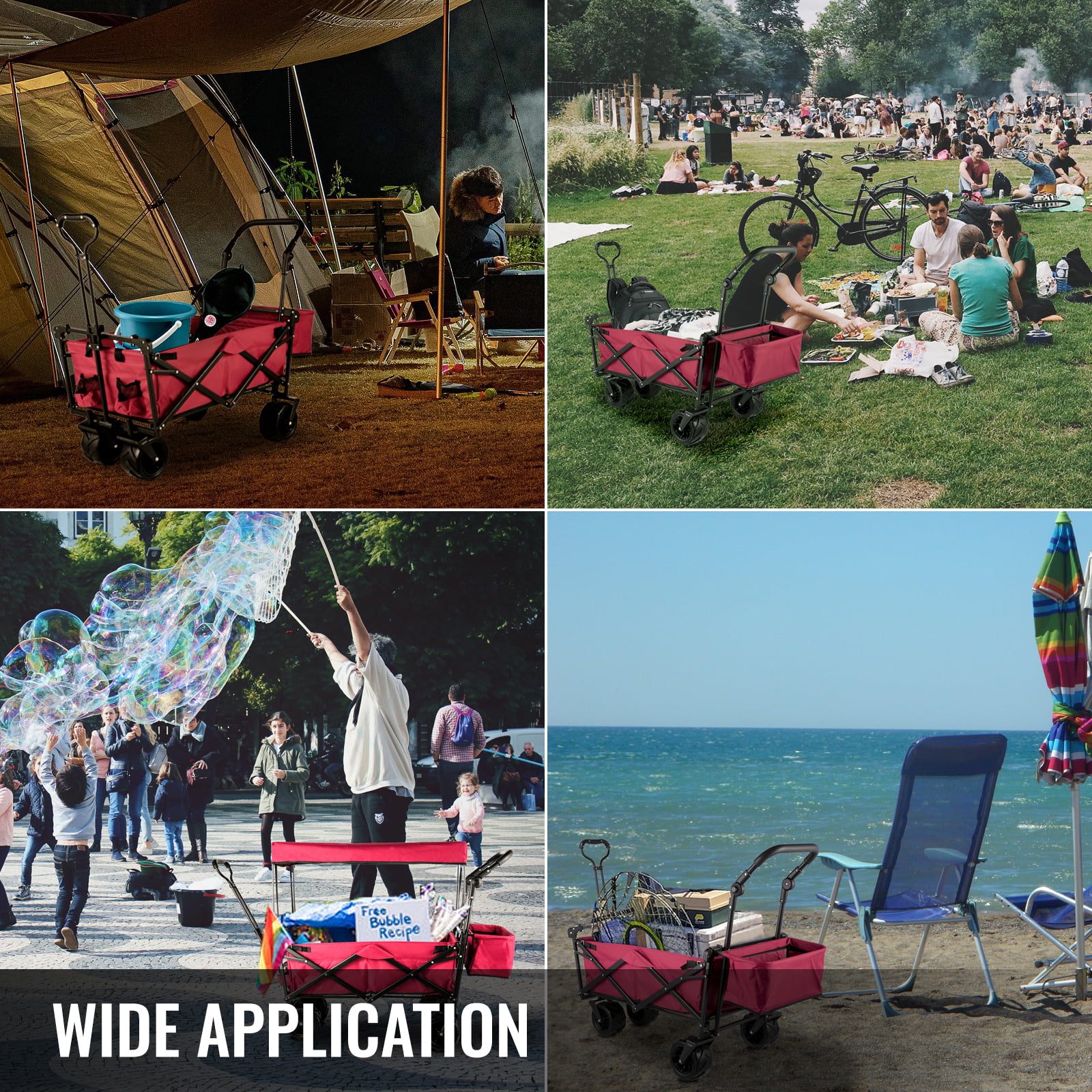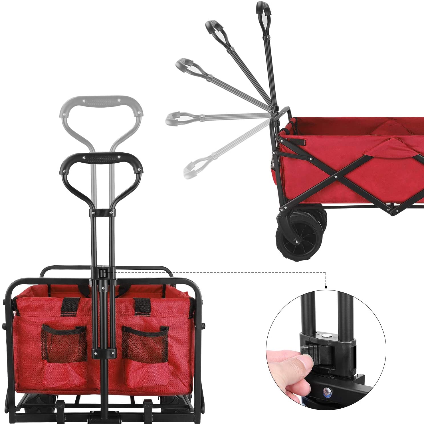 BAHOM Folding Collapsible Outdoor Utility Wagon Cart. Heavy Duty Garden Cart with All-Terrain Wheels and Carrying Bag .Red