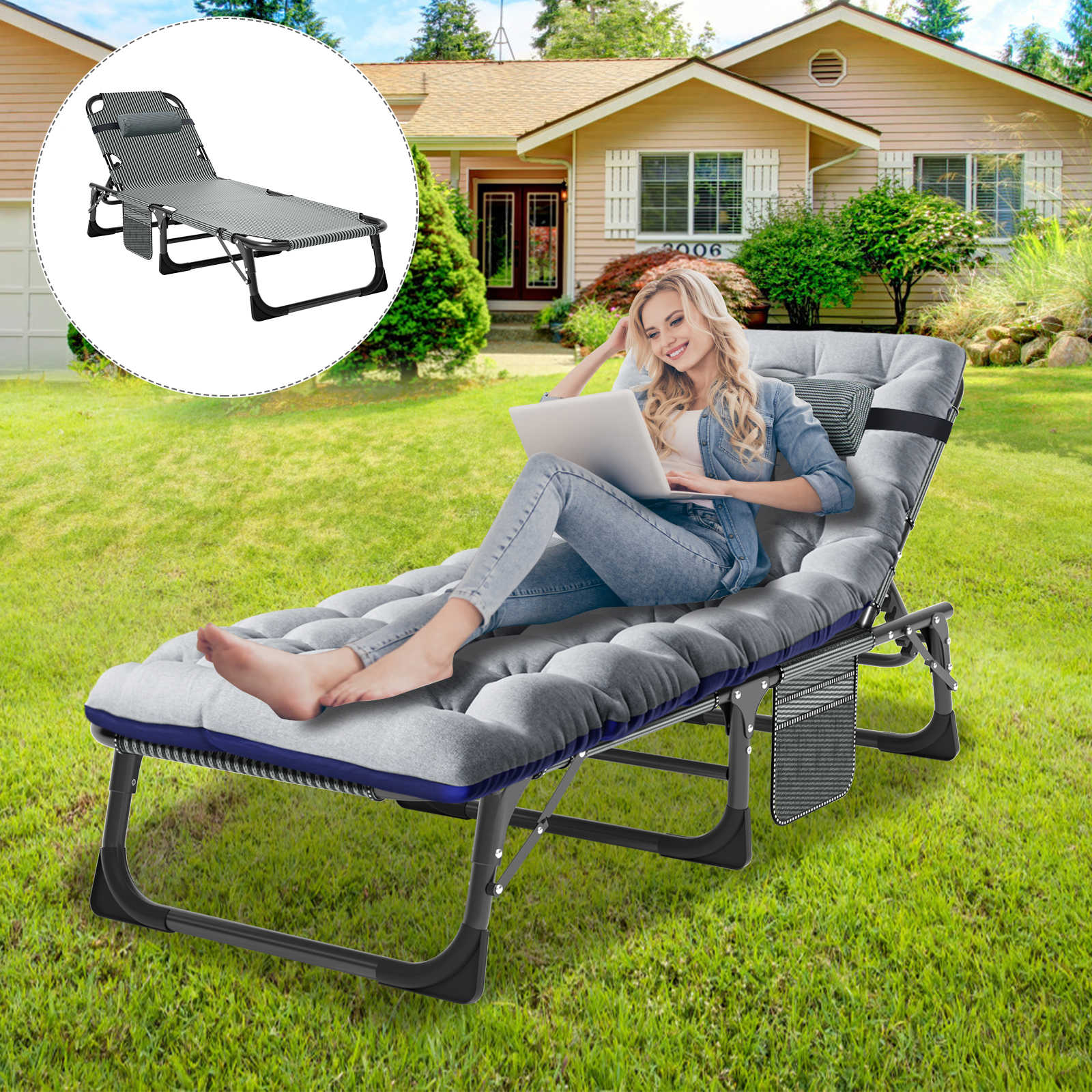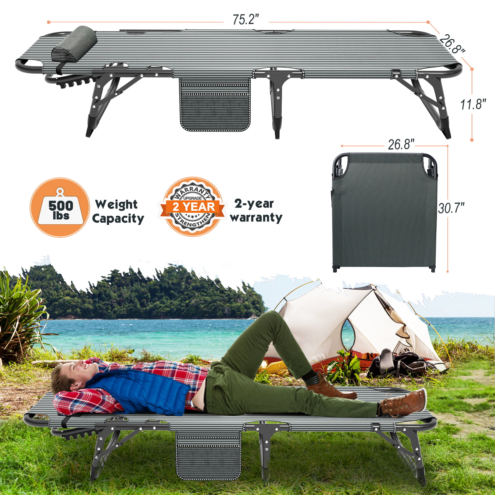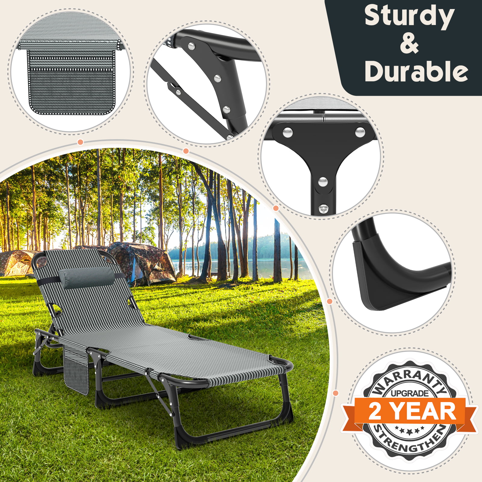 Docred 4-Fold Sleeping Cots for Adults. Folding Chaise Lounge Chairs Outdoor. Portable Folding Bed Cot Lounge Chair