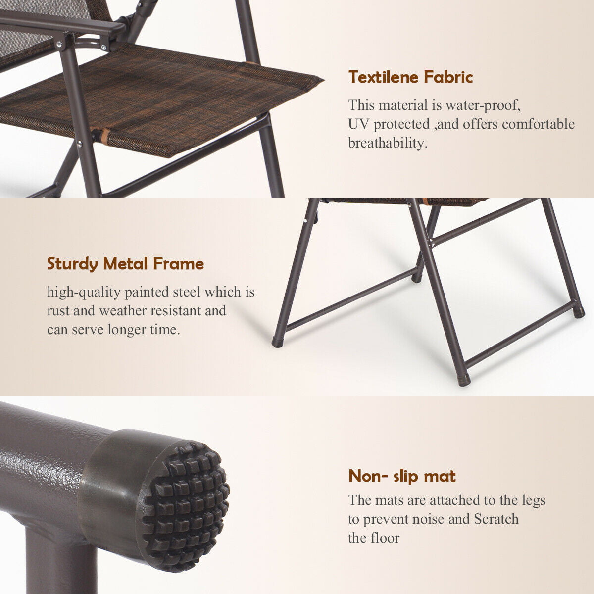 Costway Set of 4 Patio Folding Sling Chairs Steel Textilene Camping Deck Garden Pool