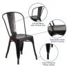 Flash Furniture Commercial Grade 4 Pack Black-Antique Gold Metal Indoor-Outdoor Stackable Chair