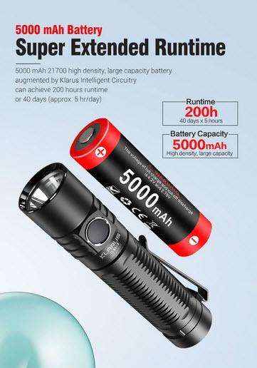 Klarus G15 Flashlight -21700 powered CREE XHP70 LED -4000LM w/Offset Mount