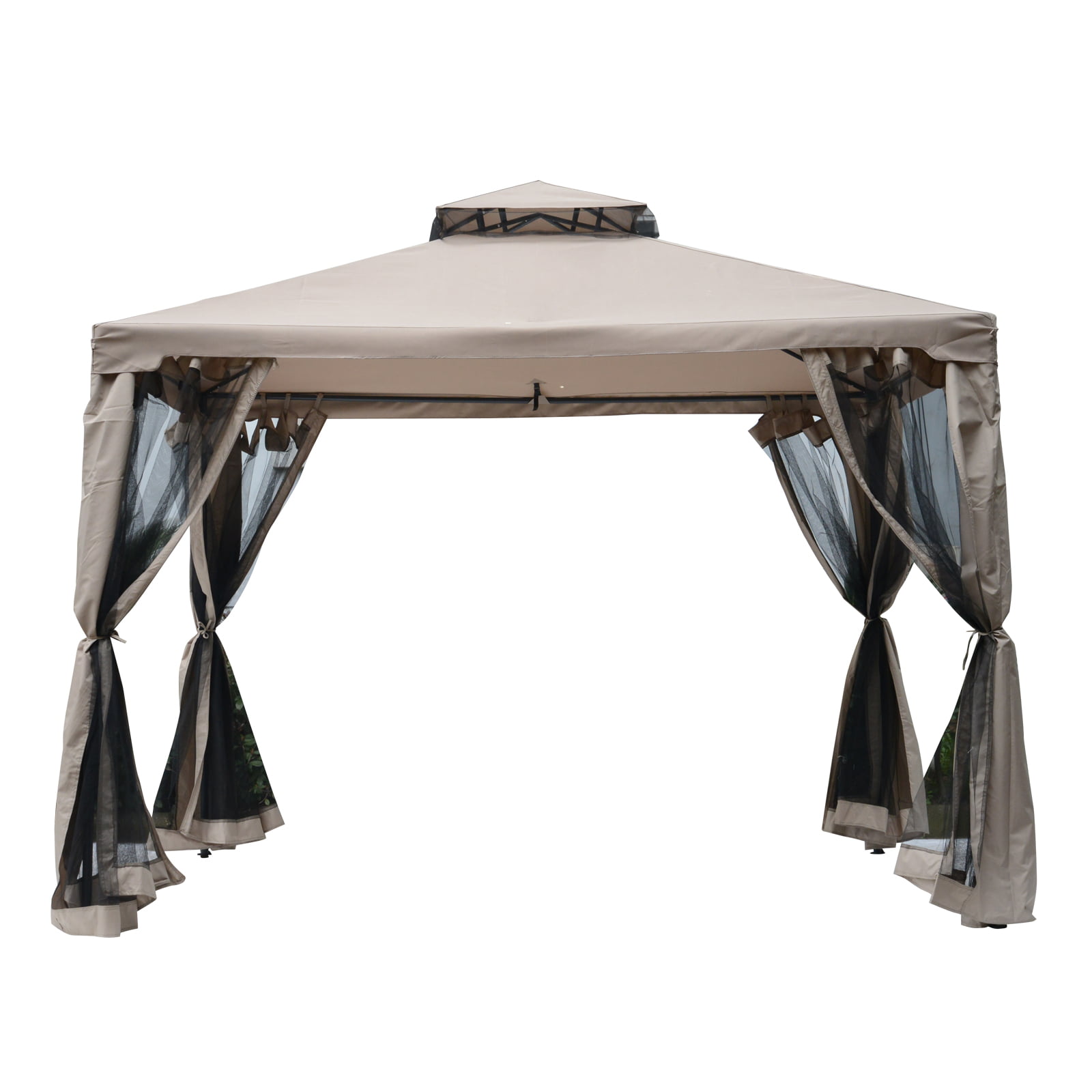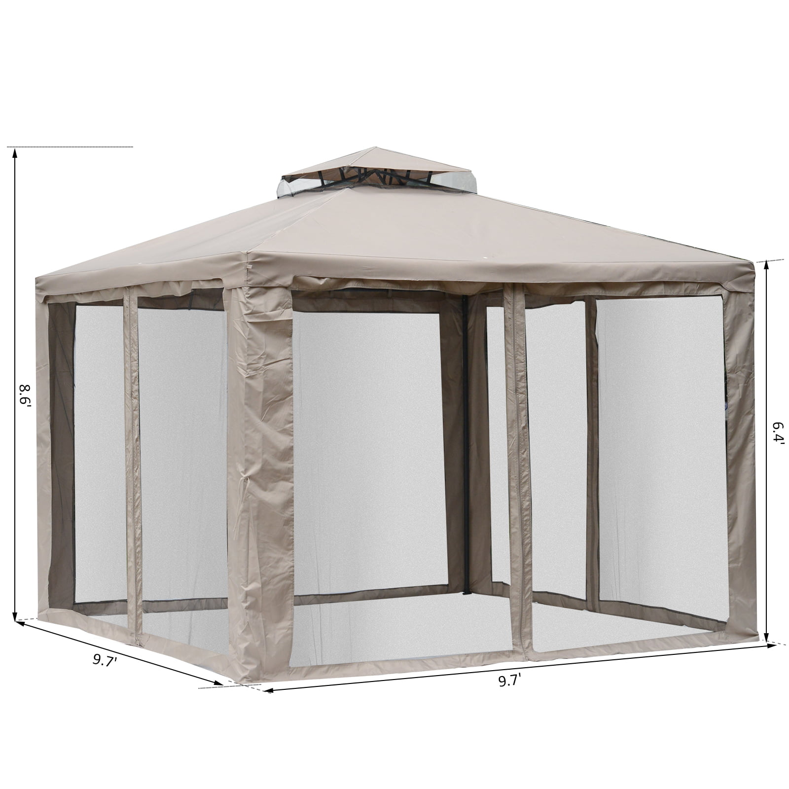 Outsunny 10' x 10' Steel Fabric 2.95m /9.7′ Outdoor Patio Gazebo Pavilion Canopy Tent Steel 2-tier Roof - Taupe