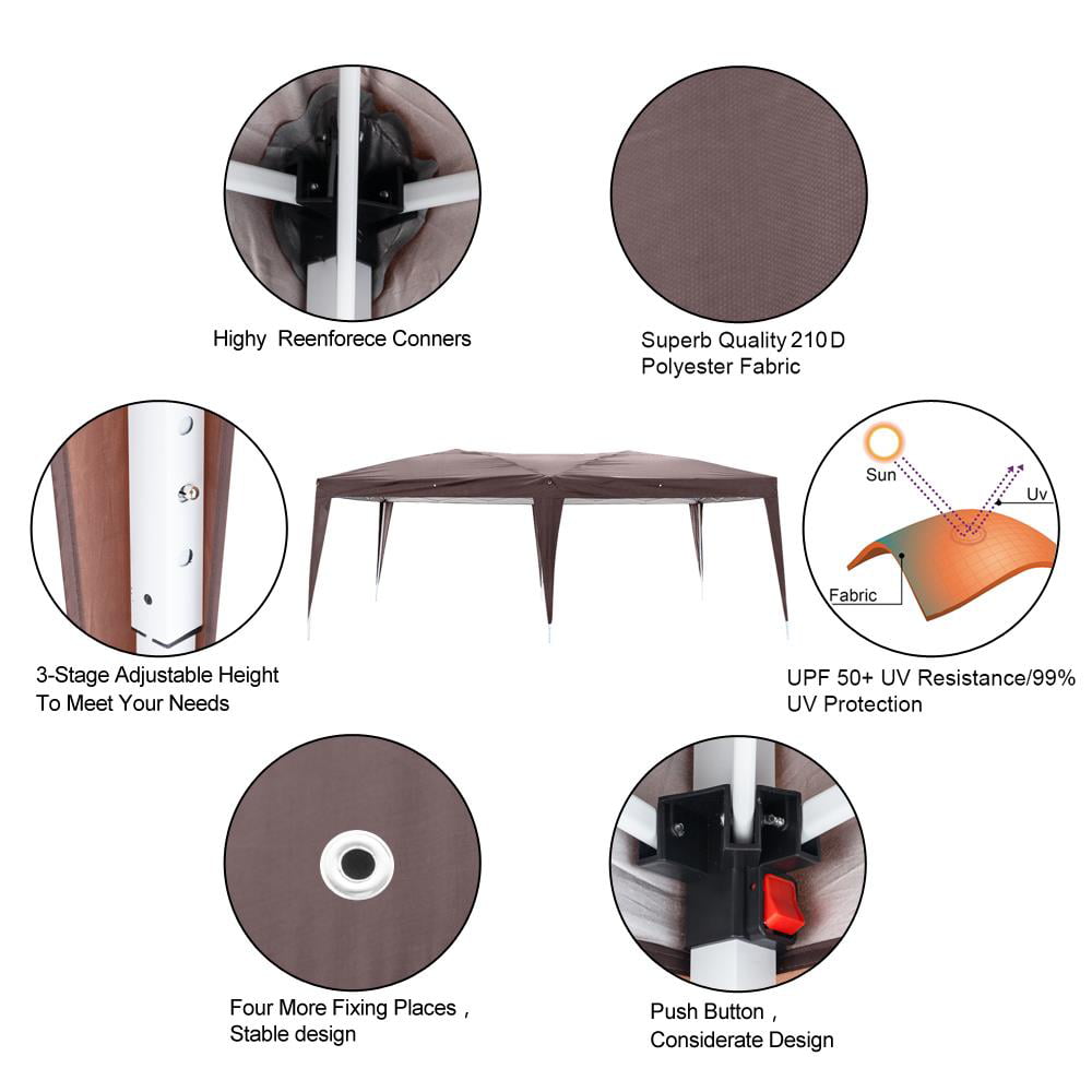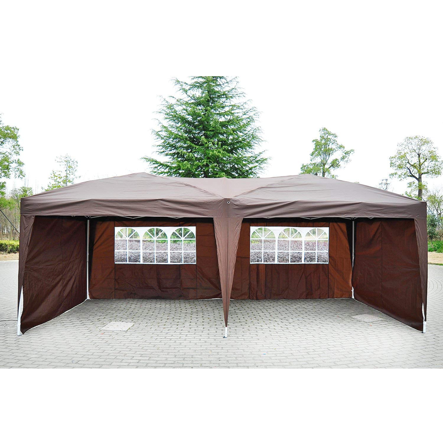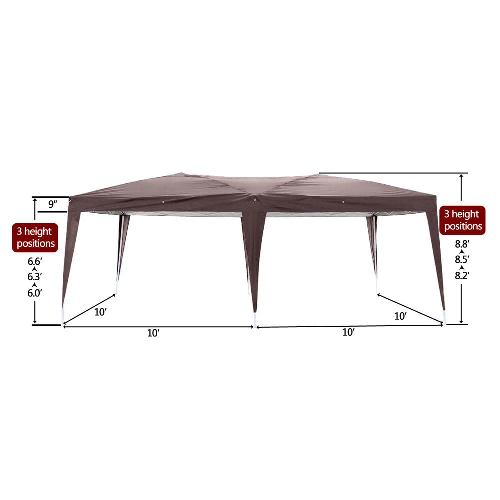 UBesGoo Easy Pop Up Canopy Party Tent. Coffee Brown with 4 Removable Sidewalls 10-Feet x 20-Feet