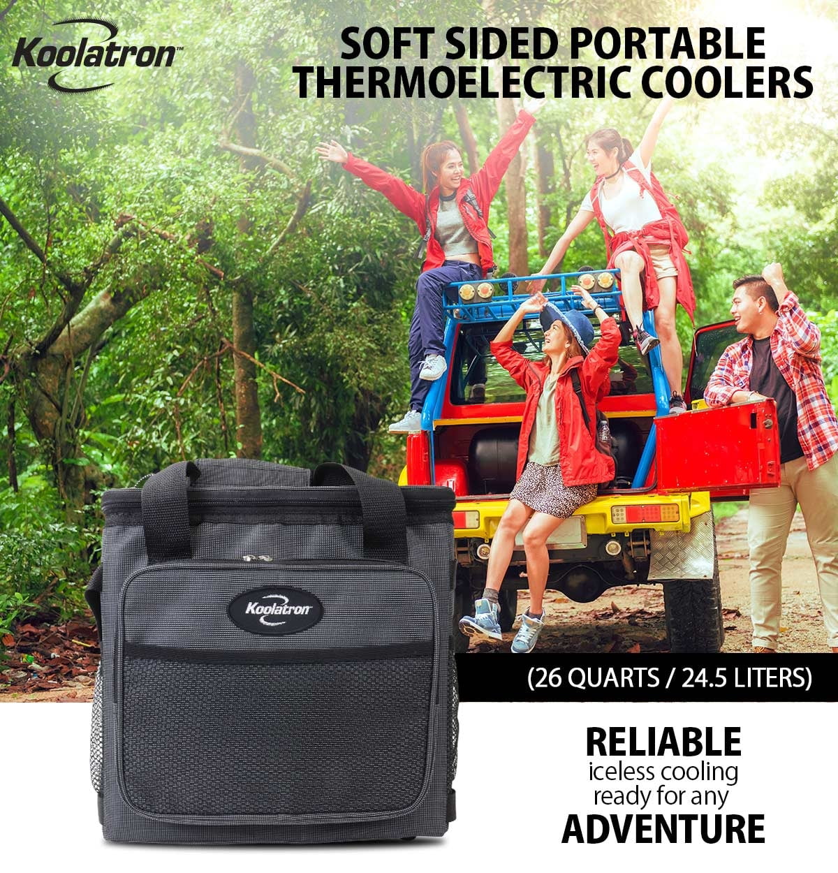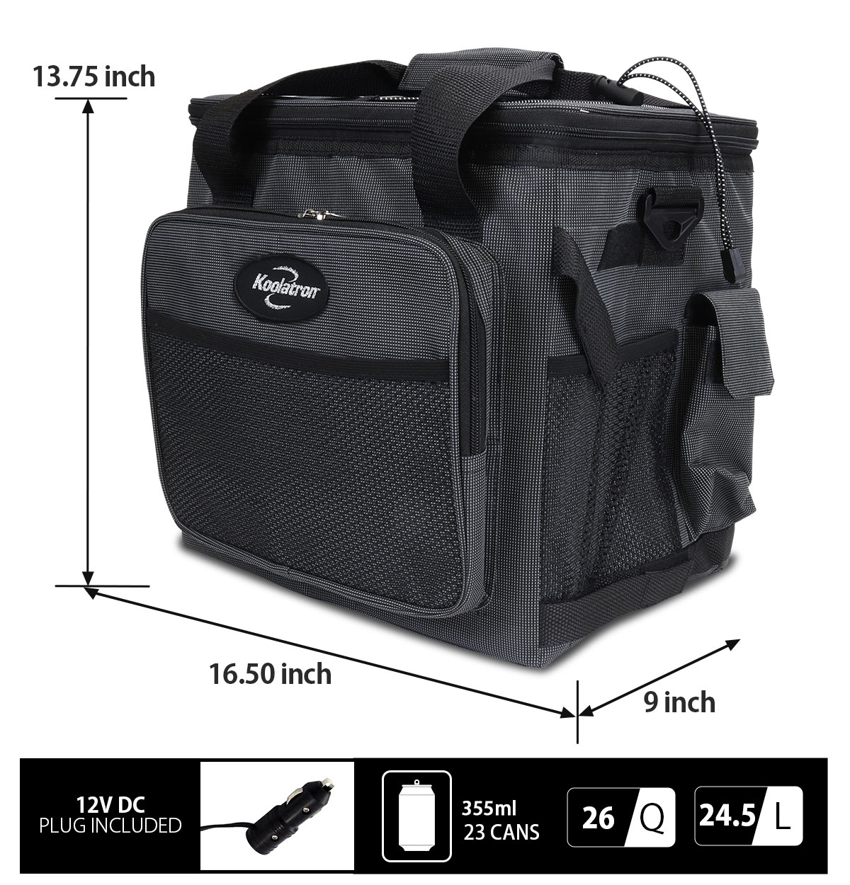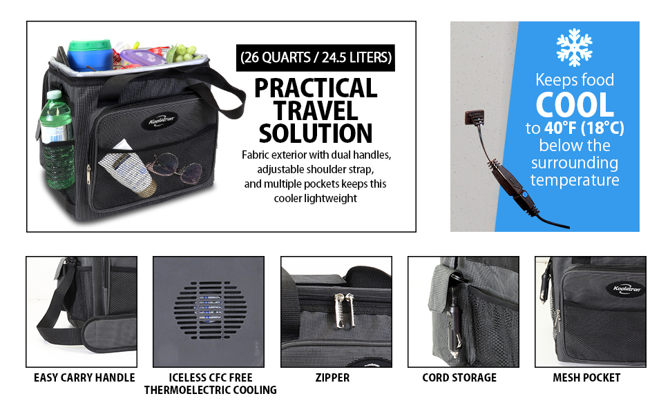 Koolatron Thermoelectric Iceless Electric Cooler Bag. 12Volt 26 qt (25 L) Black Gray
