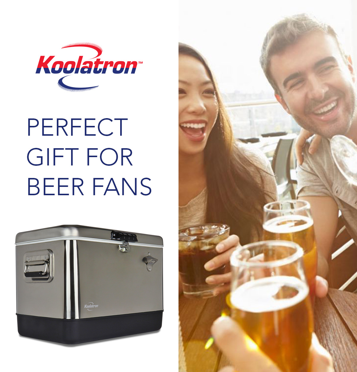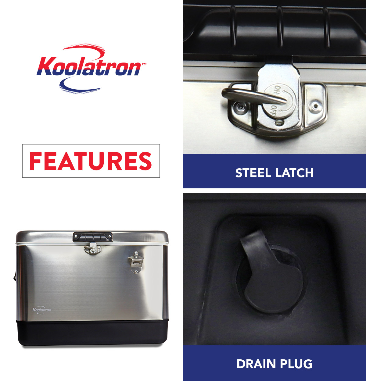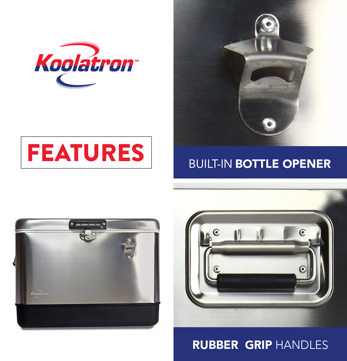 Koolatron Stainless Steel Ice Chest Beverage Cooler with Bottle Opener 51 L / 54 Quart 85 Can Capacity for Camping. Beach. RV. BBQs. Tailgating. Fishing