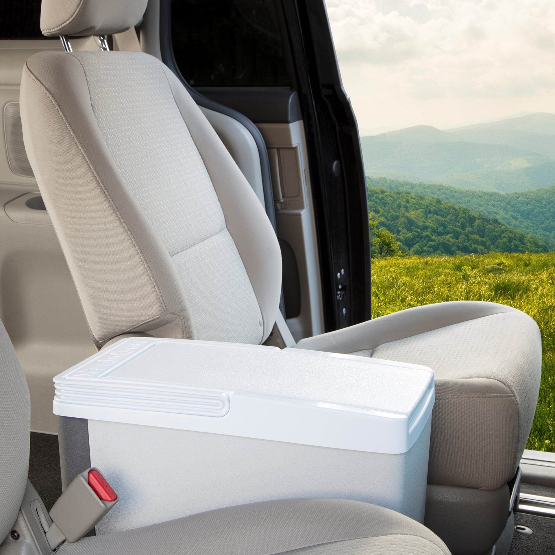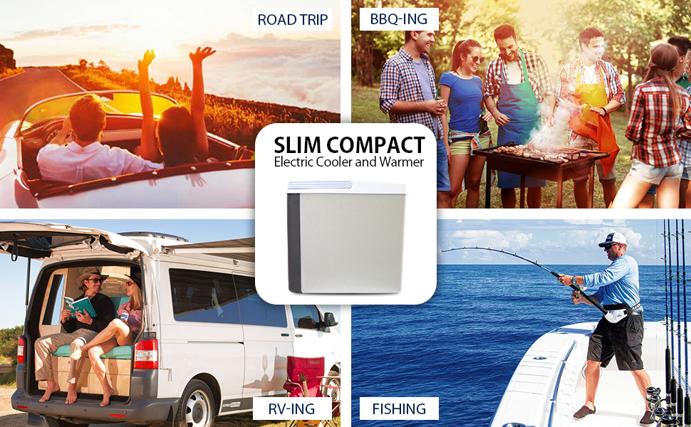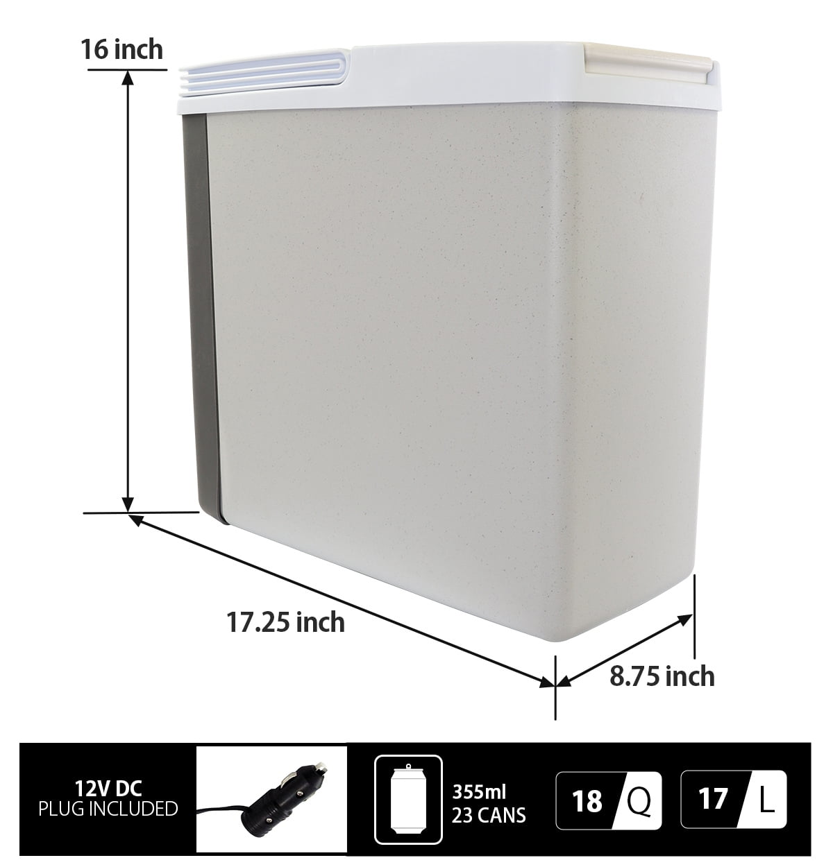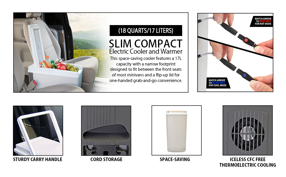 Slim Compact P20 Thermoelectric Iceless 12V Cooler Warmer. 17L / 18 qt Portable Travel Fridge. Grey and White. Made in North America
