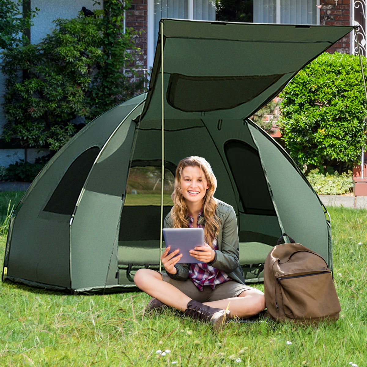 Patiojoy 1-Person Folding Camping Tent Cot Portable Pop-Up Tent w/Sleeping Bag & Air Mattress for Outdoor