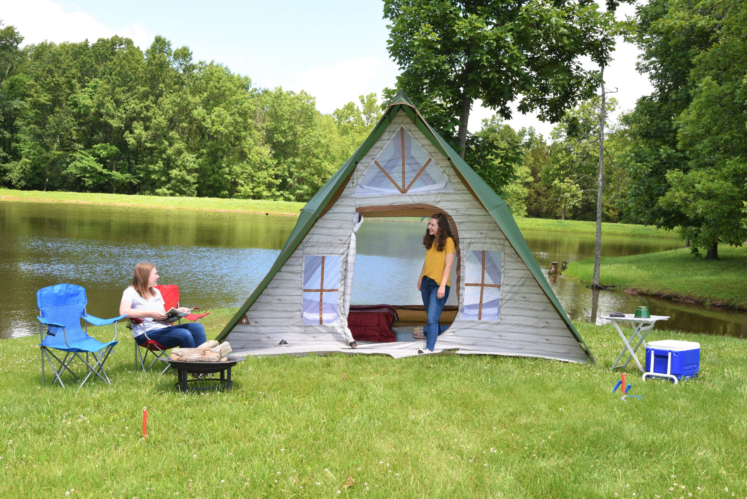 Ozark Trail 8-Person Family Cabin Tent 1 Room with Screen Porch. Green