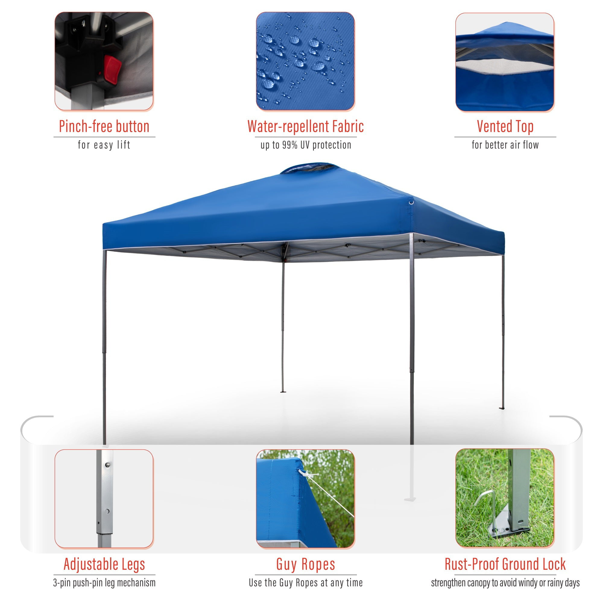 Sophia & William 10′ x 10′ Outdoor Gazebo Instant Pop Up Canopy Tent with Wheeled Bag - Blue