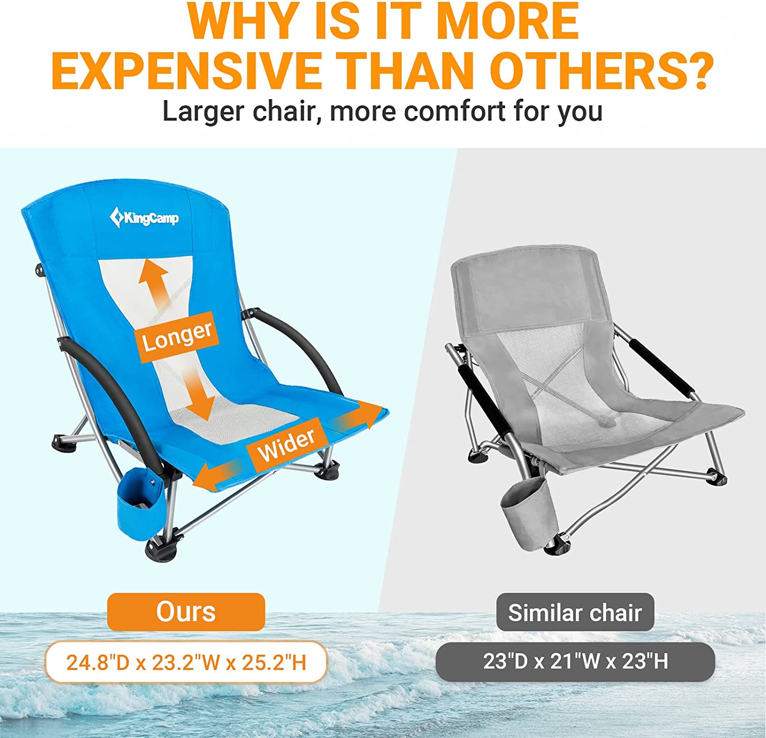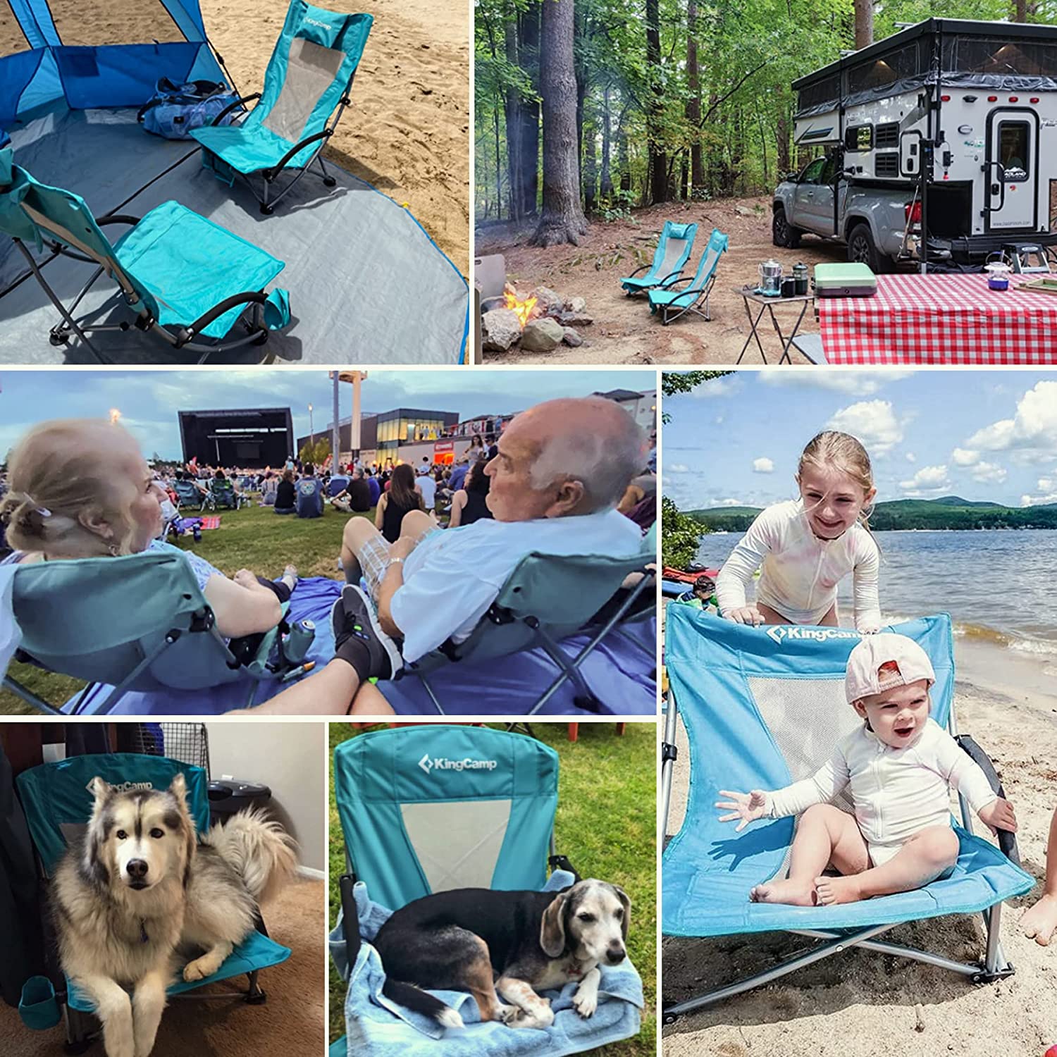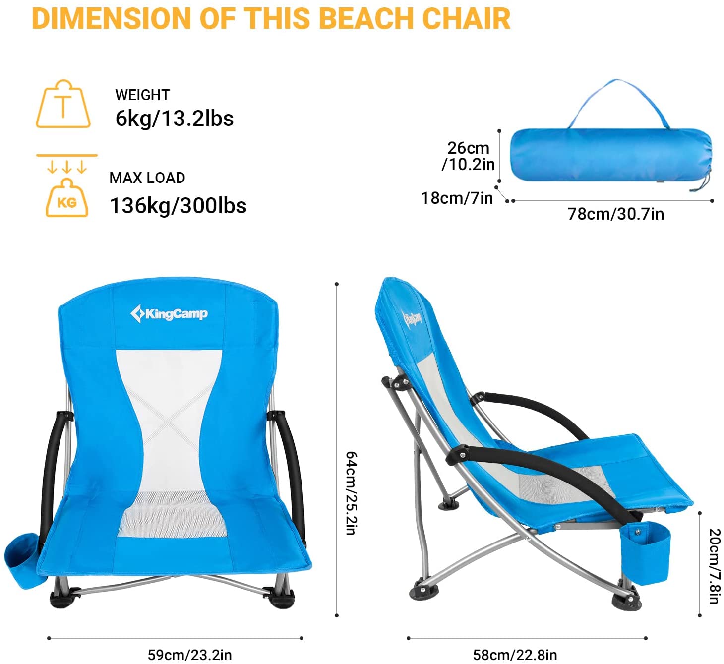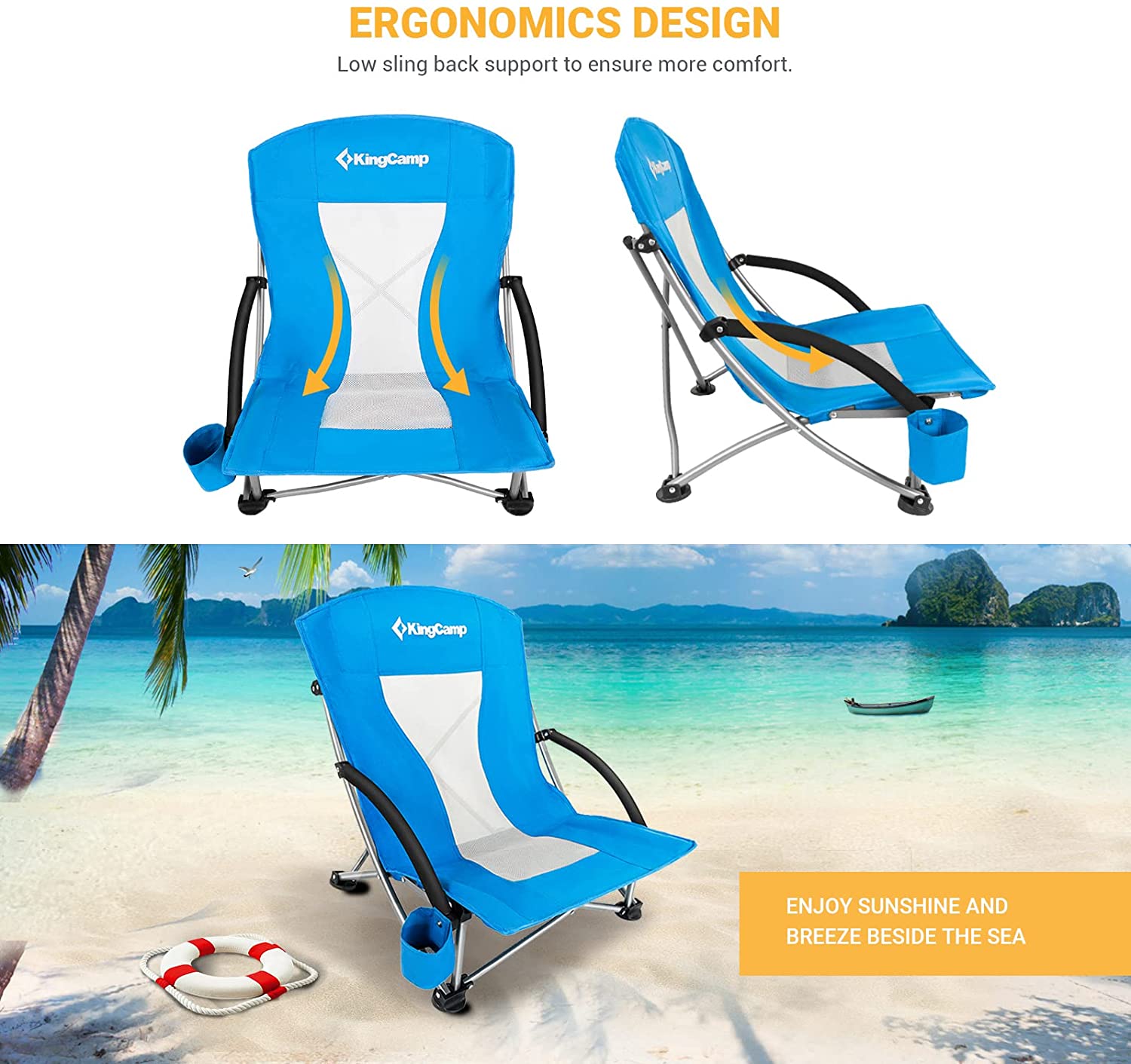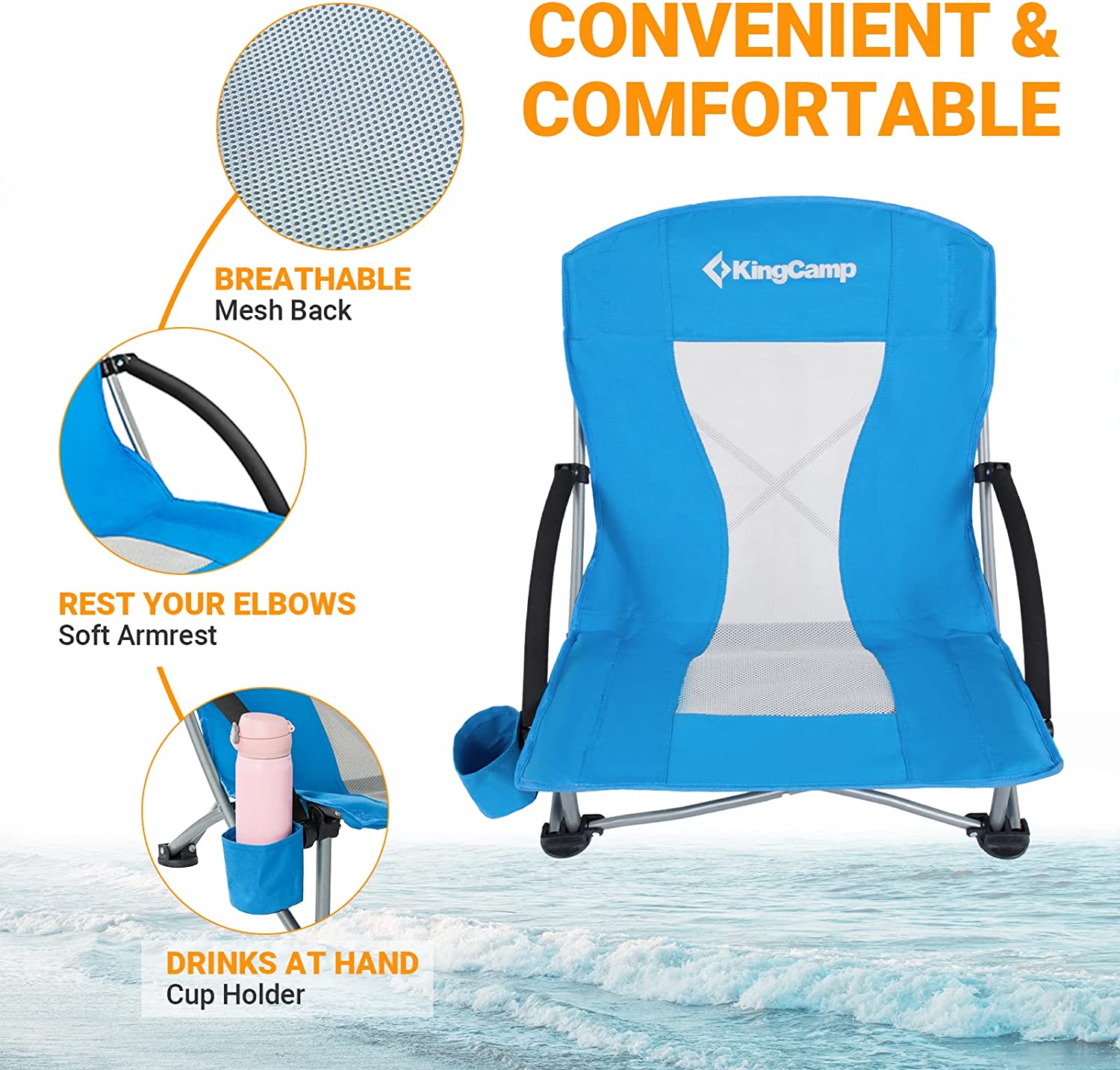KingCamp Backpack Beach Chairs Folding Mesh Reclining Back Beach Chairs 2 Piece Set for Adults Blue