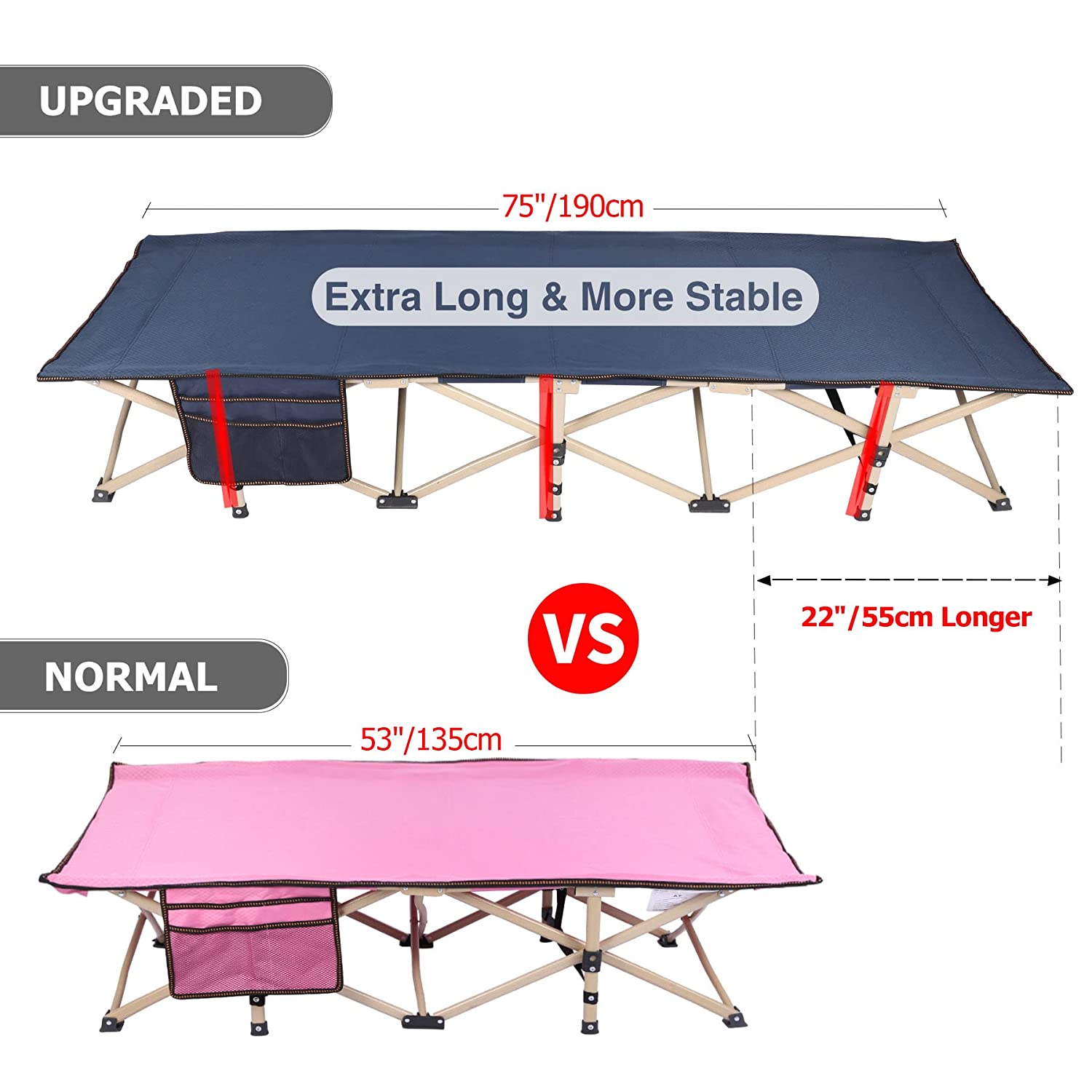 REDCAMP Extra Long Folding Kids Cot for Sleeping 10-15. Portable Toddler Cot Bed Child Travel Cot for Camping. Navy Blue 75”x26”
