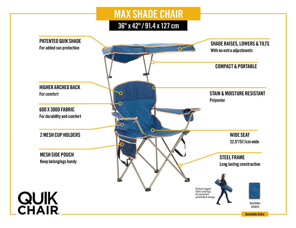 Quik Chair Max Shade Folding Chair. Navy. Lawn Chairs. Lounge Chairs