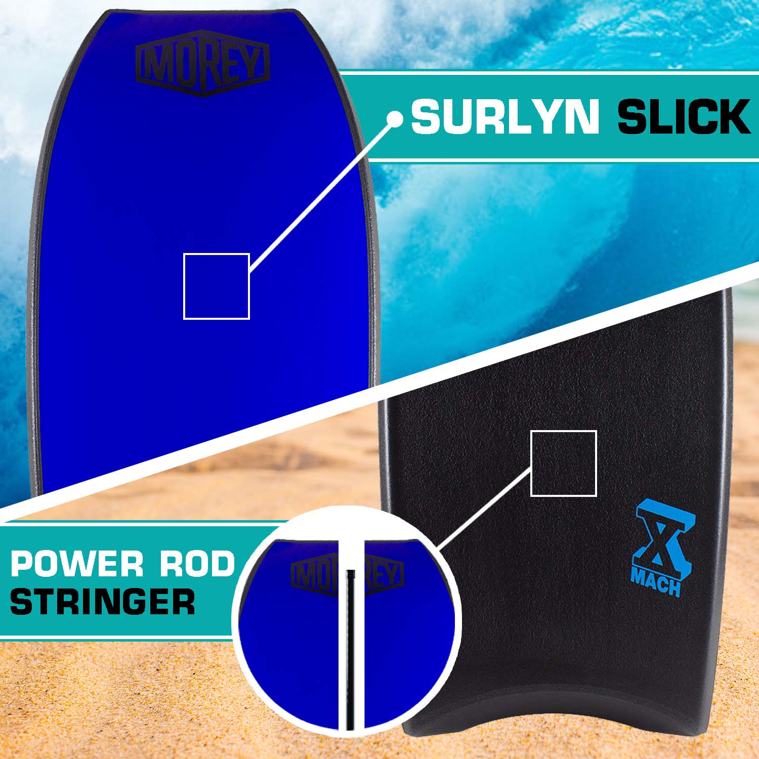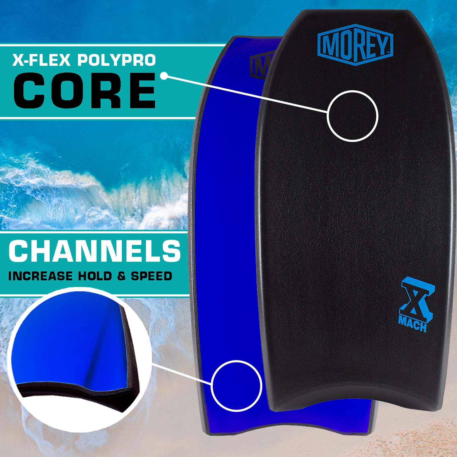 Morey Pro Series Mach 10 | 40 Inch Bodyboard | X-Flex Polypro Core & Mesh | Single Power Rod Stringer | Slick Bulbs & Crescent Tail | Surfboard for Ocean. Sea. River. Pool