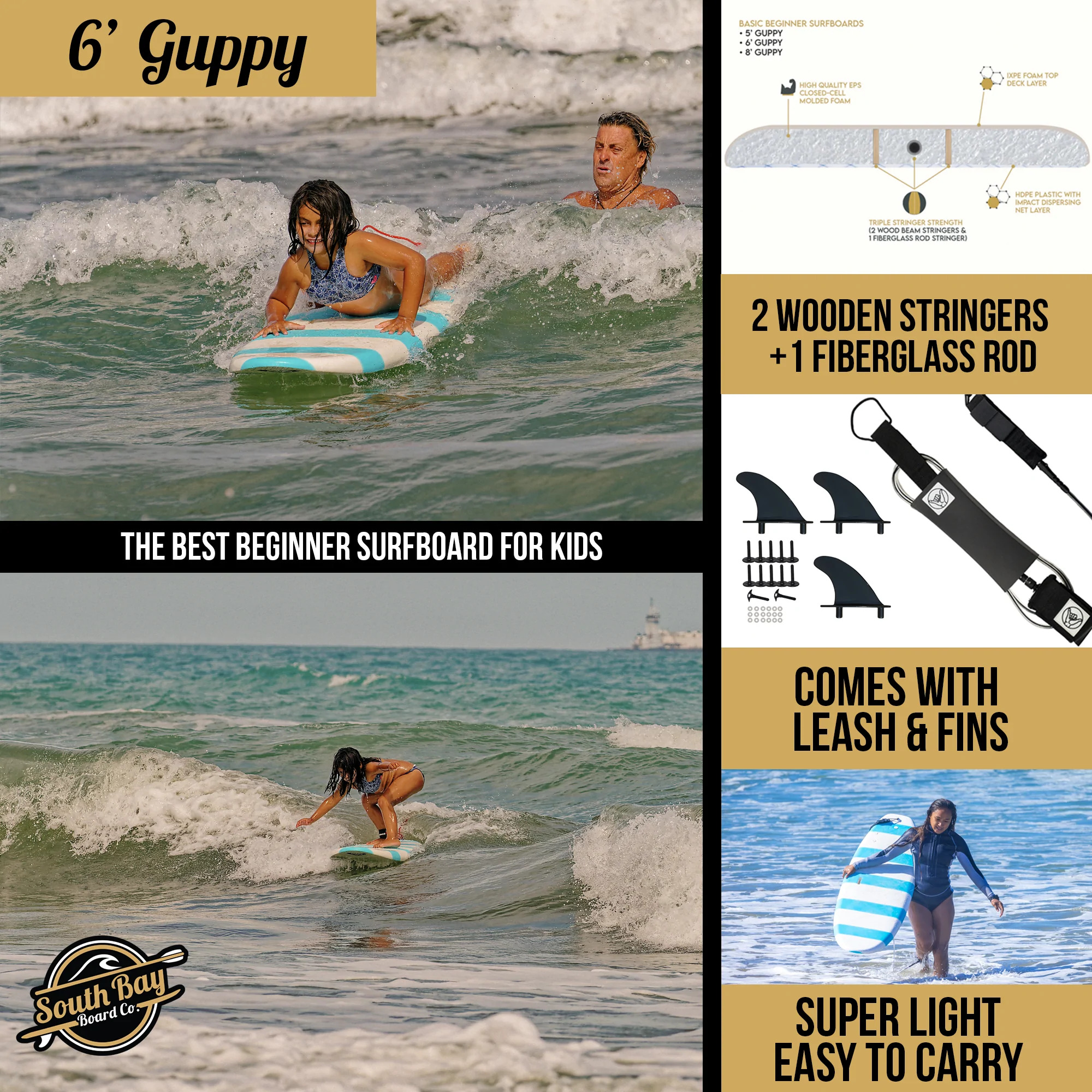 Costway 6′ Surfboard Foamie Body Surfing Board W/3 Fins & Leash for Kids Adults Yellow