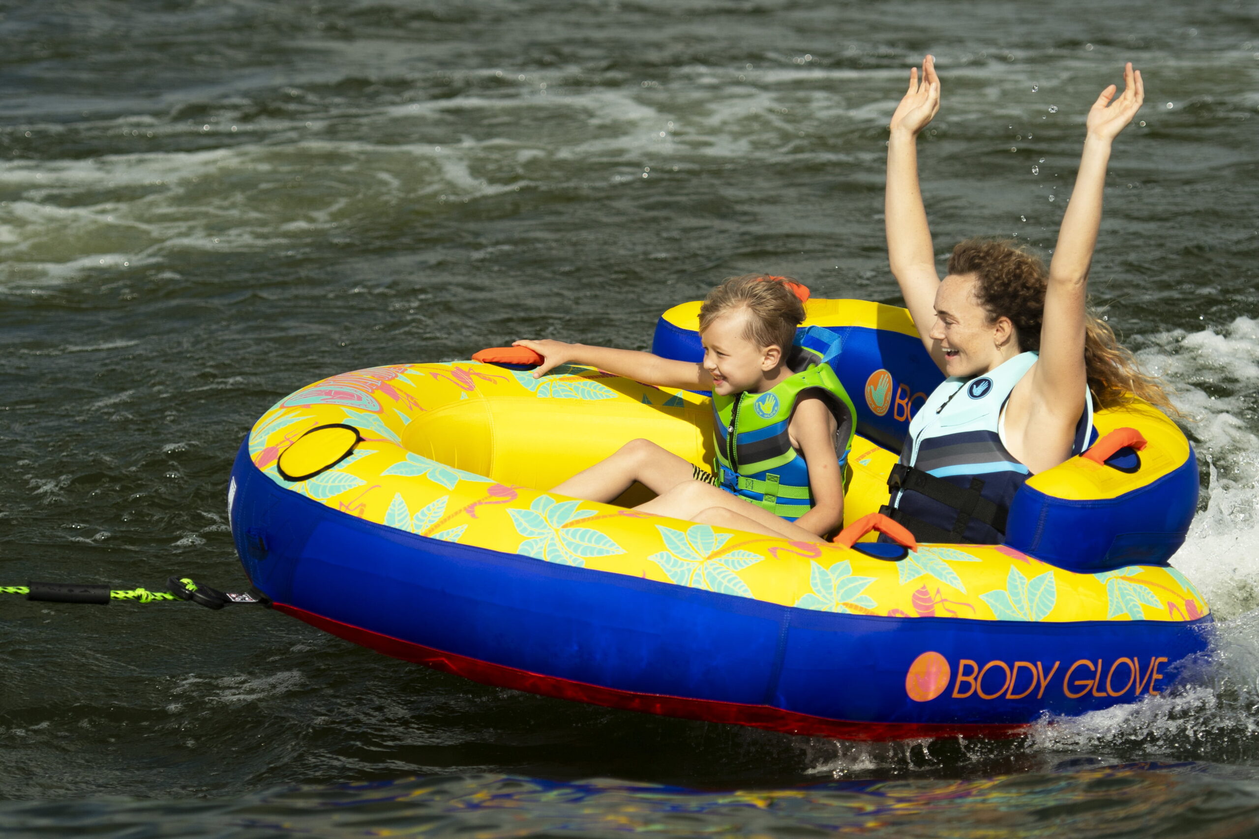 Body Glove Bayside 2 Person Yellow Water Skiing Inflatable Towable Tube