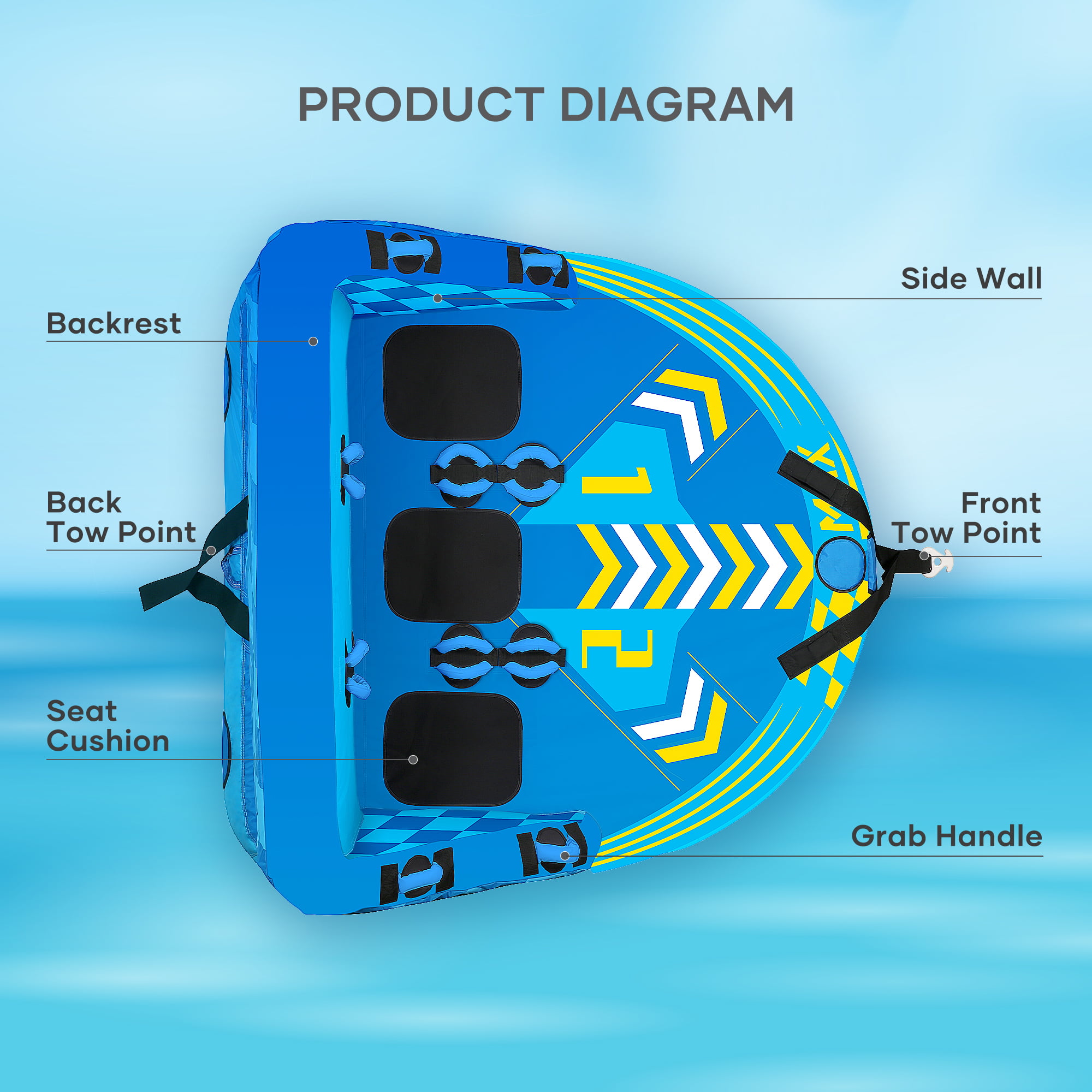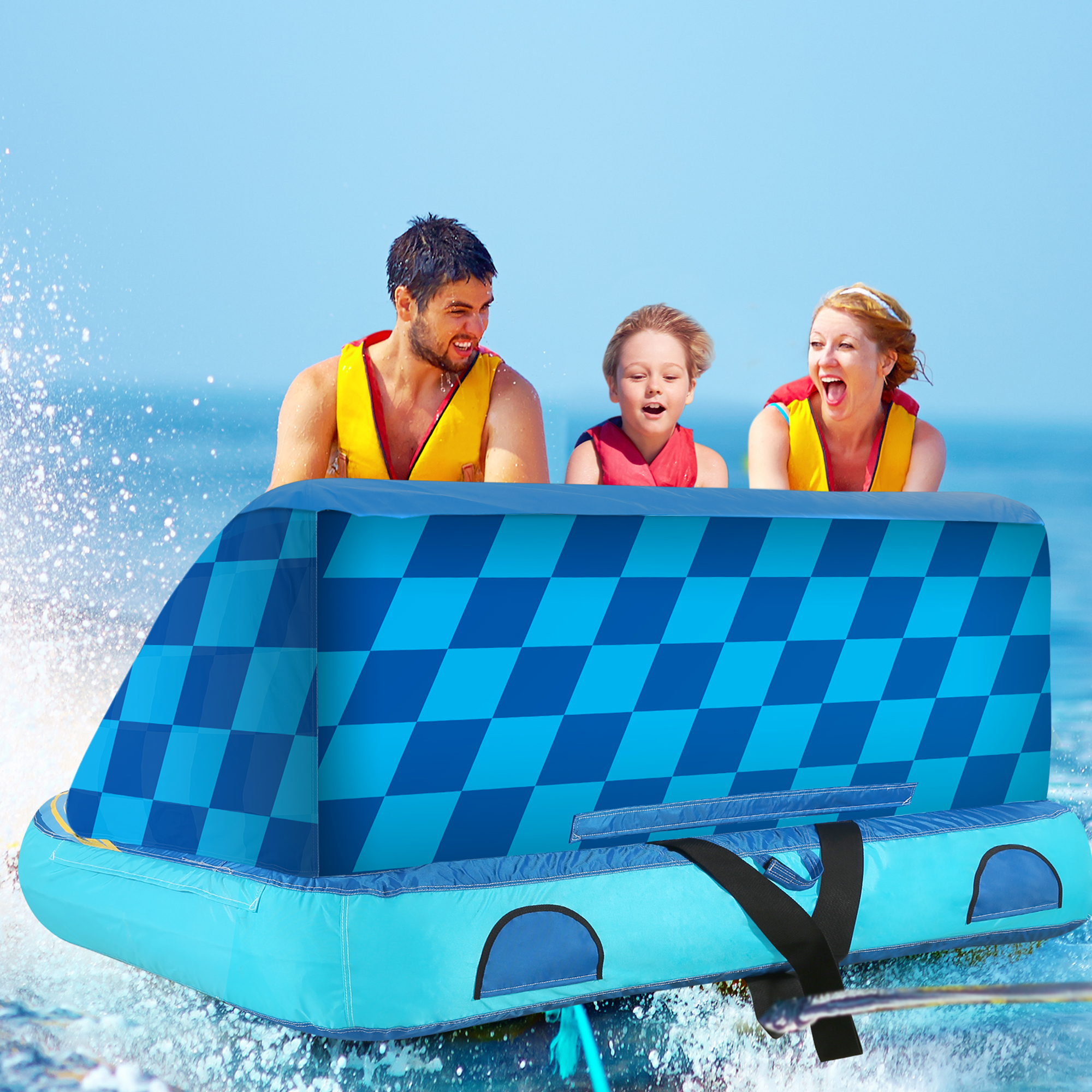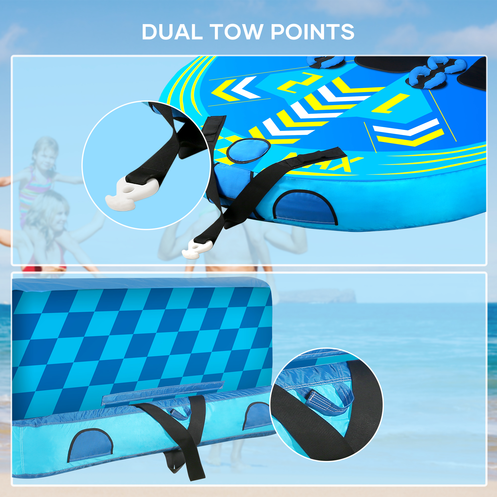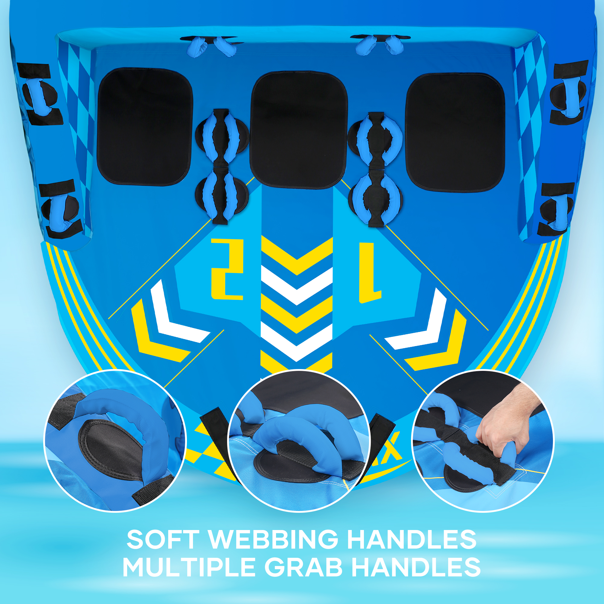 MaxKare Inflatable Towable Tube for Boating with Foam Seats & Multiple Handles. 1-3 Rider - Blue
