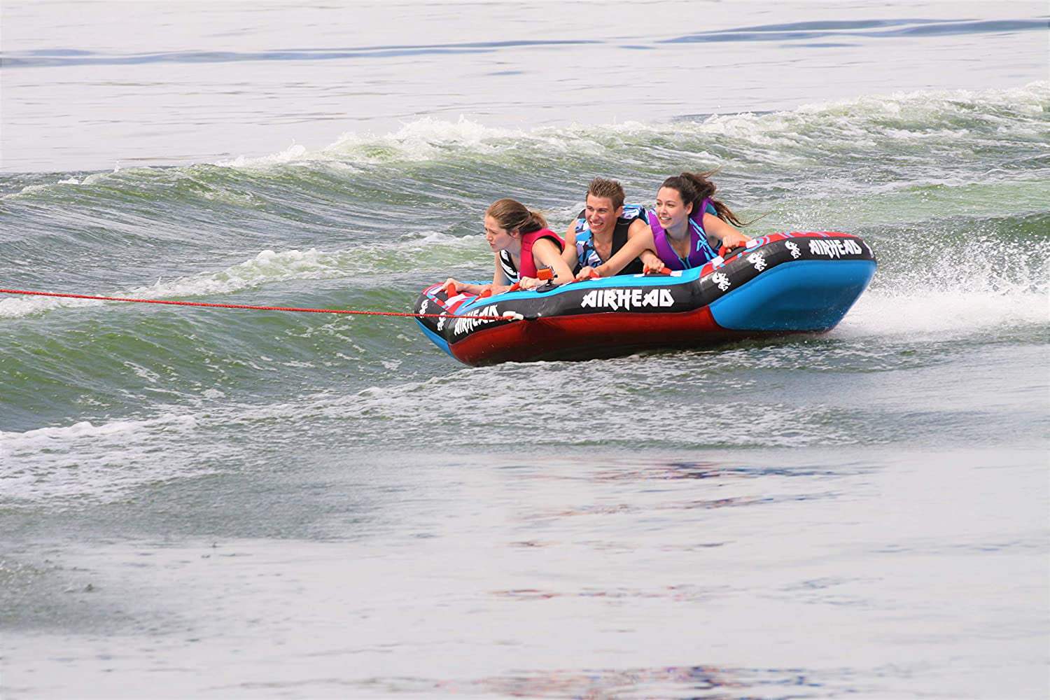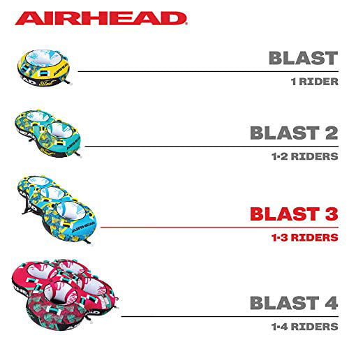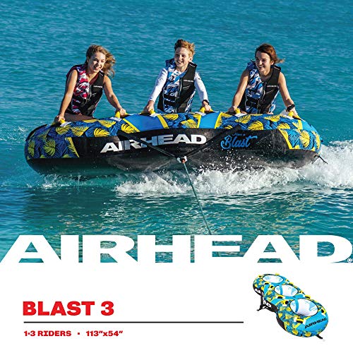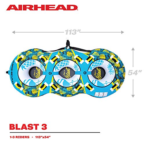 Airhead BLAST 3 Inflatable Open Top 3-Person Towable Waterskiing Towables Tube. Tropical Blue