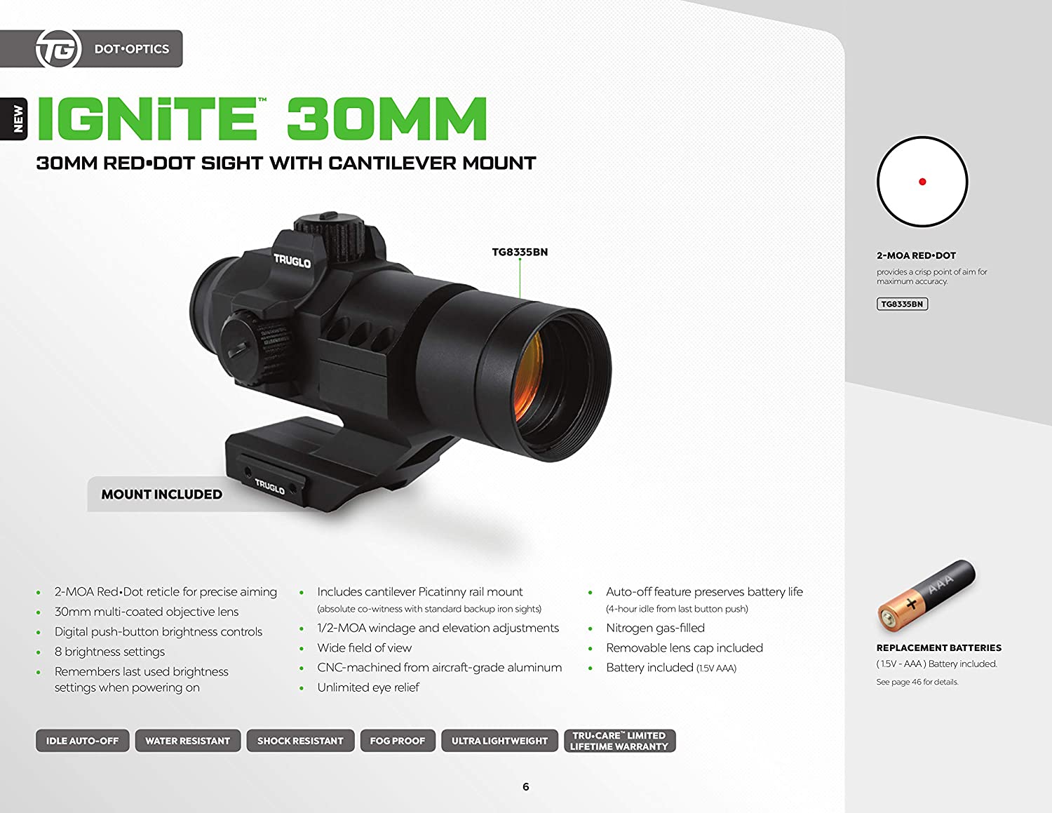 TRUGLO Ignite 30mm Red-Dot Sight. Cantilever Mount Ignite 30mm Red-Dot Sight. Matte Black