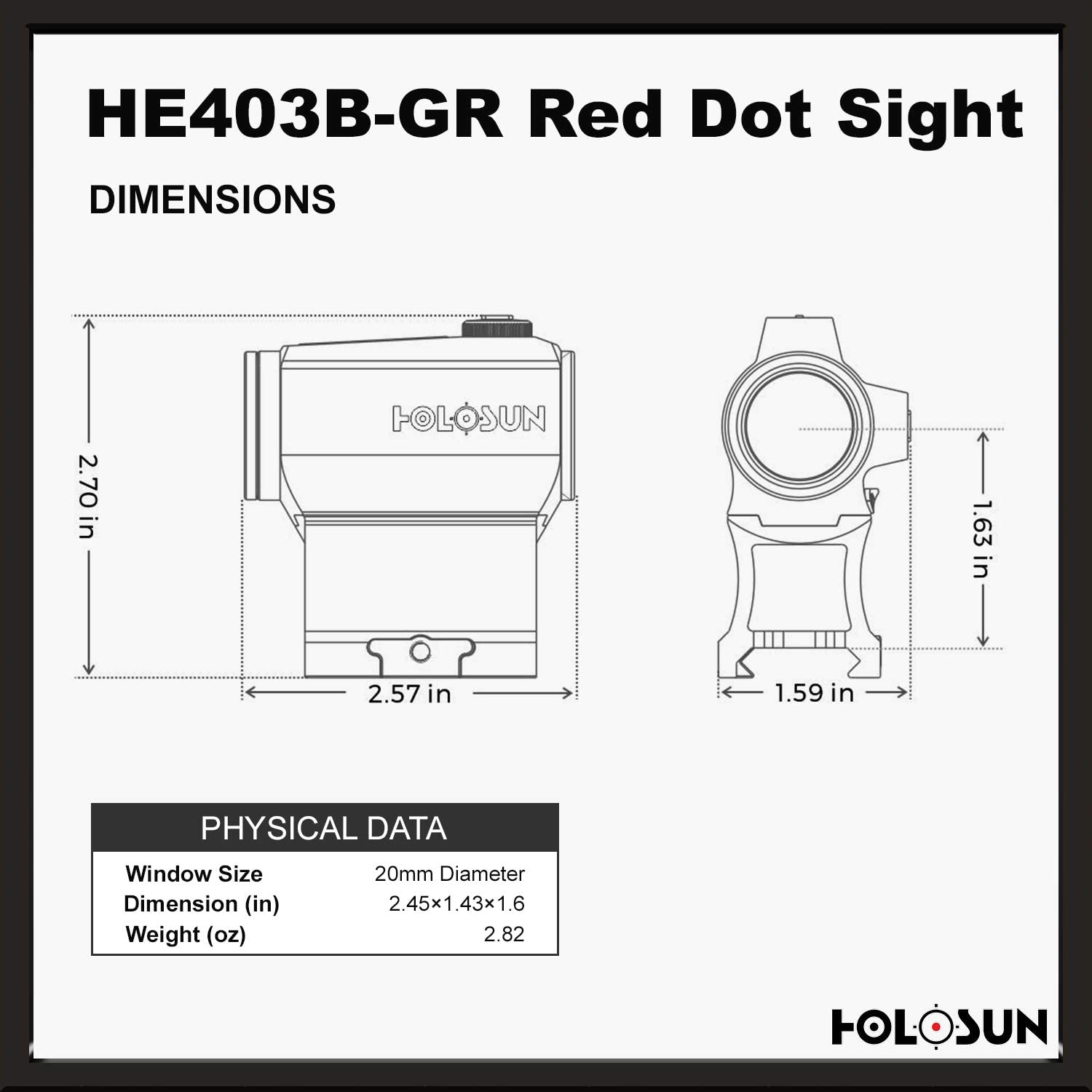 HOLOSUN HE403B-GR Elite Micro Green Dot Sight LED 2 MOA With Low Profile Mount