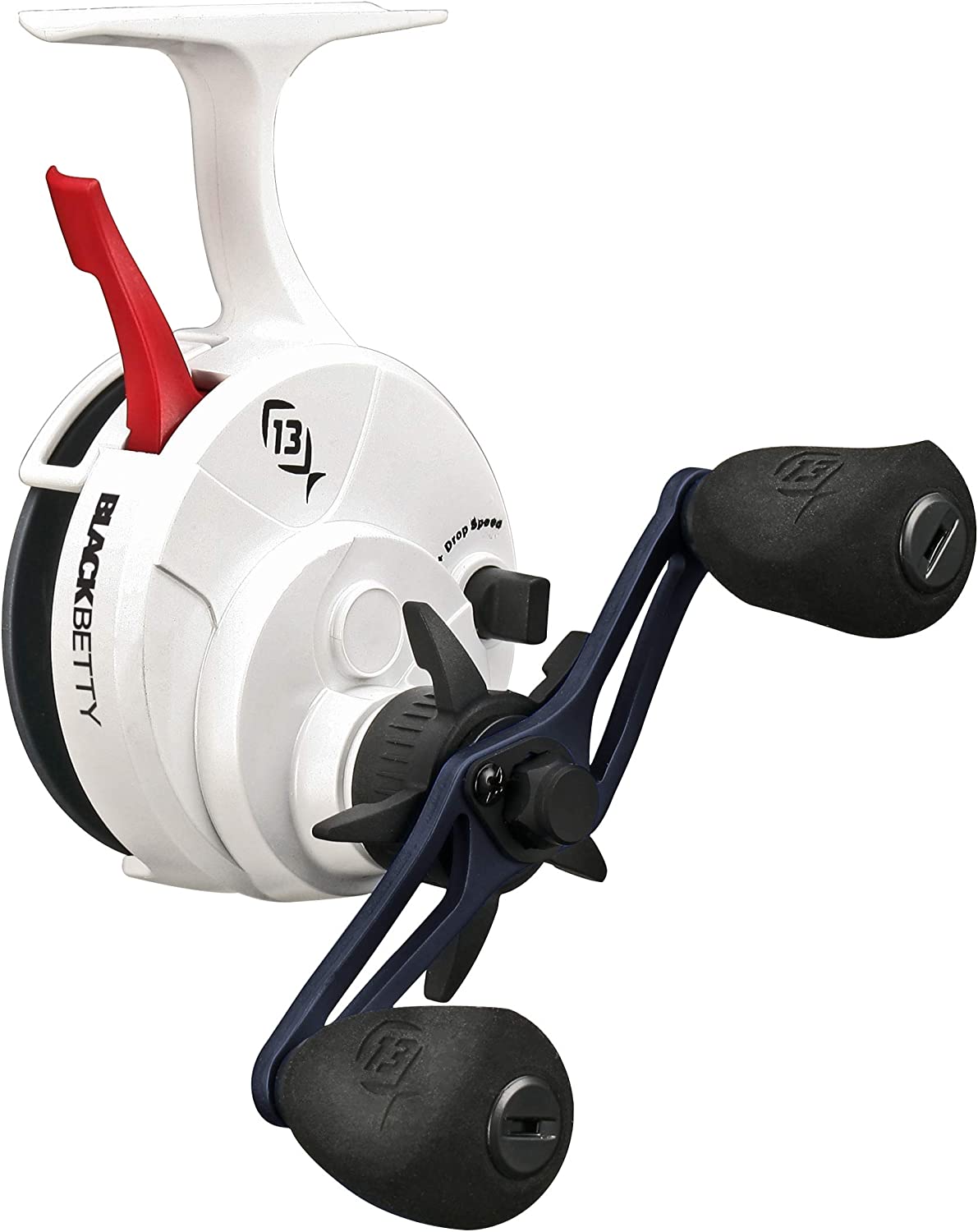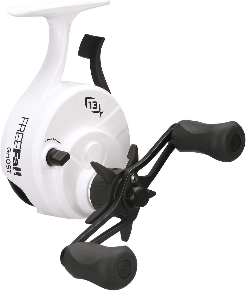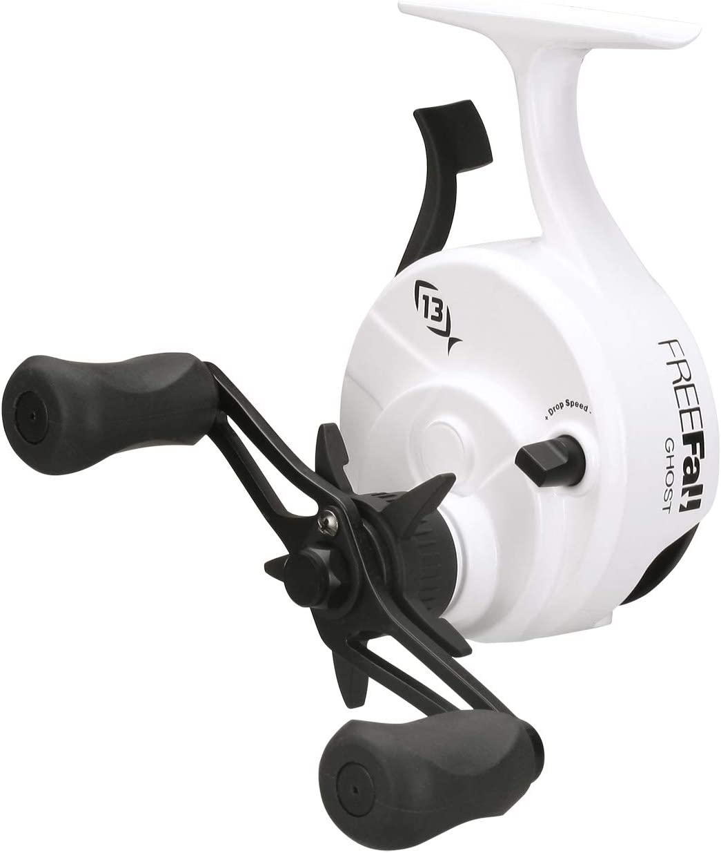 13 Fishing Black Betty FreeFall Ghost Window Inline Ice Fishing Reel. White (Left Hand Retrieve)
