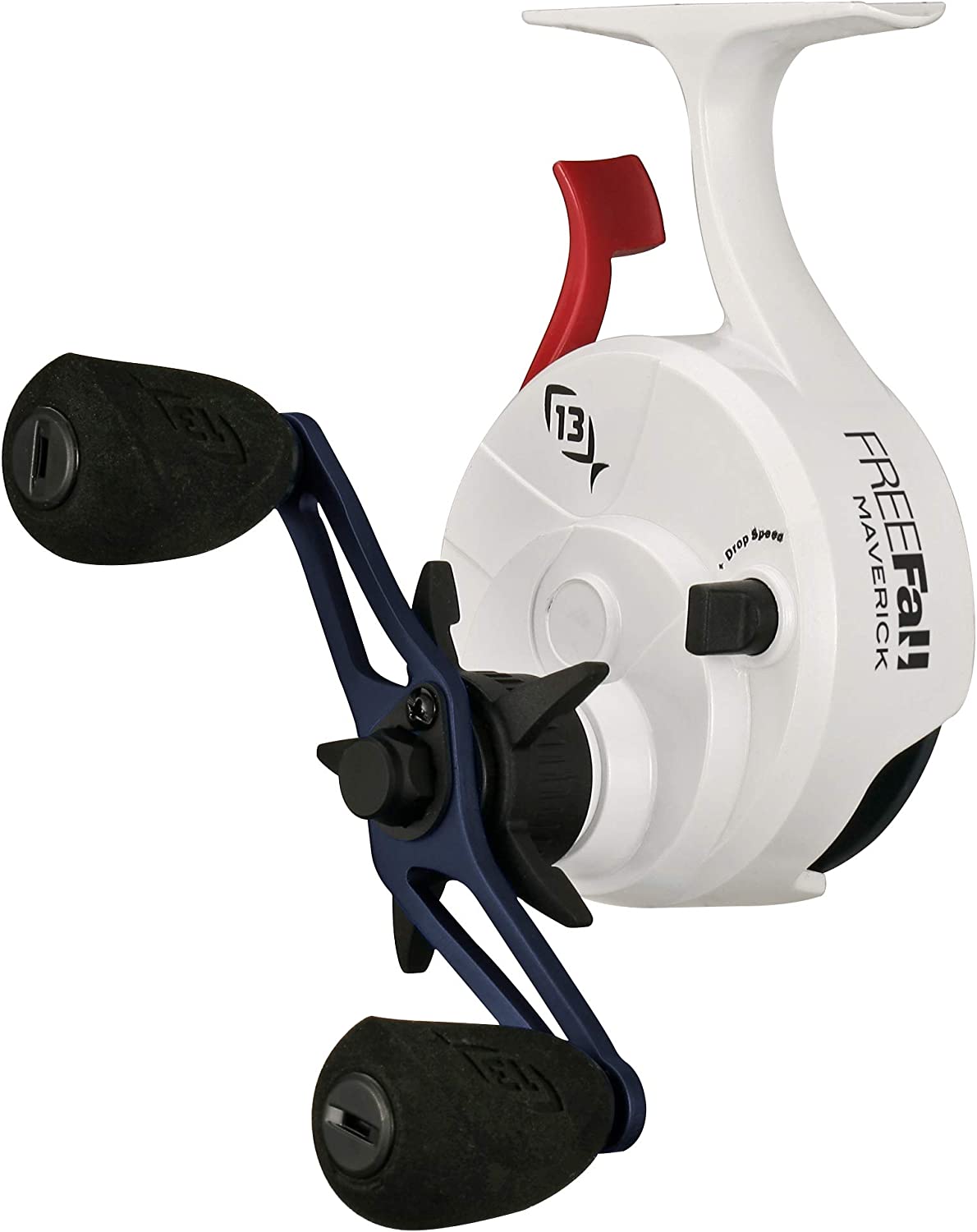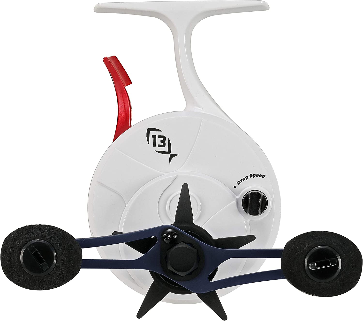 13 Fishing Black Betty FreeFall Ghost Window Inline Ice Fishing Reel. Patriot (Right Hand Retrieve)