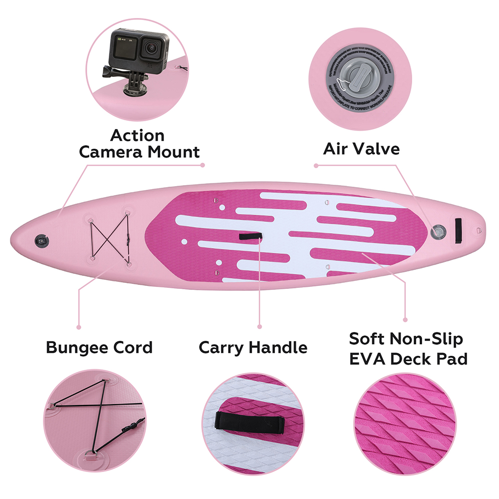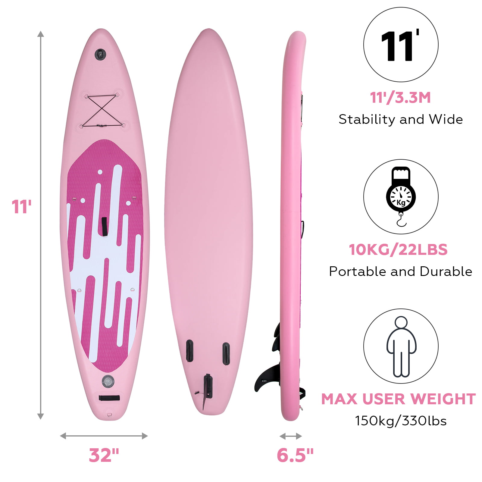 Camping Survivals 11 Ft. SUP Inflatable Paddle Board. with Fin. Pump. Paddle & Carry Bag. 6 In. Thick