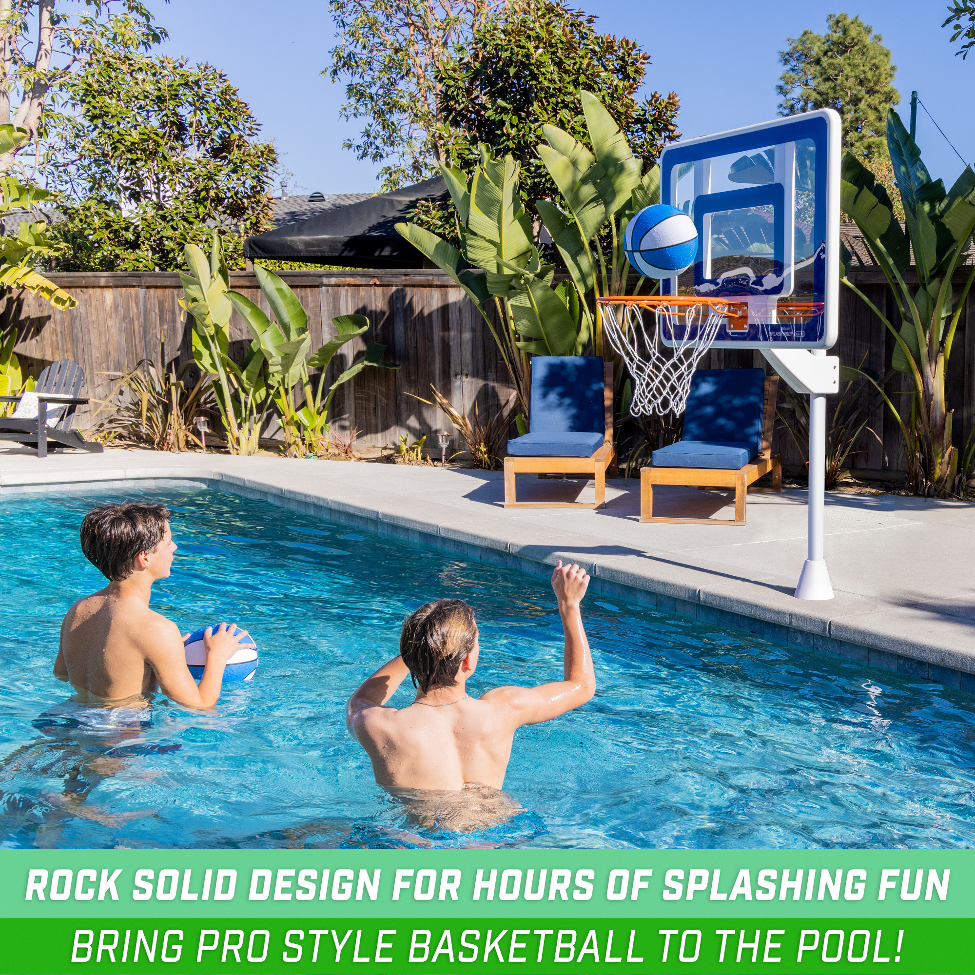 GoSports Deck-Mounted Splash Hoop ELITE Adjustable Height Inground Pool Basketball Game with Regulation Rim