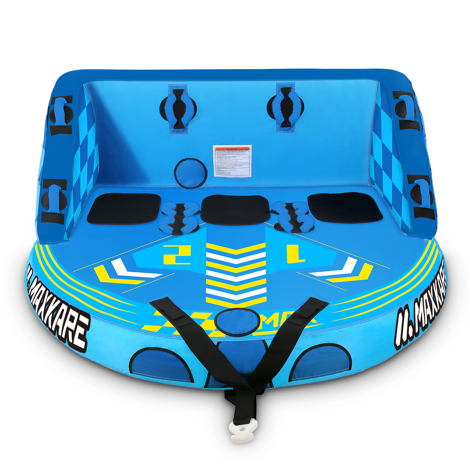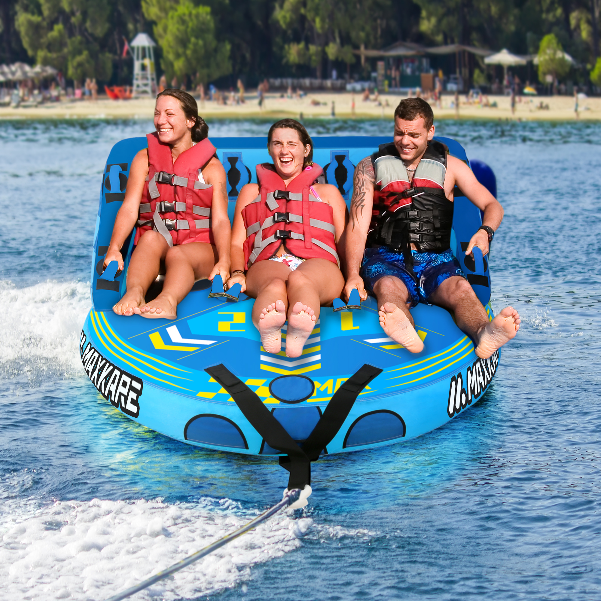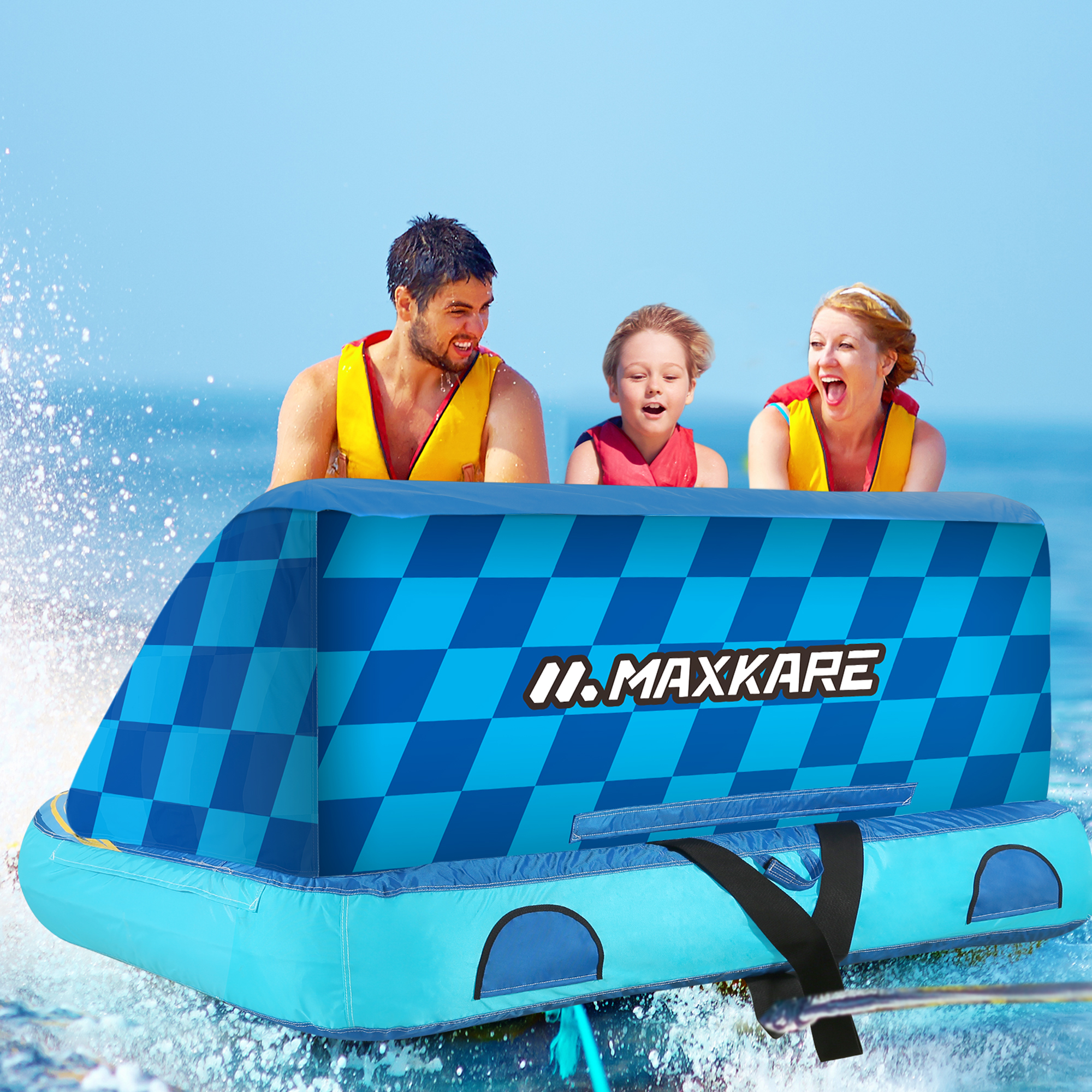 Maxkare 3 Person Inflatable Towable Tube for Boating 79” × 76” × 33”. Blue