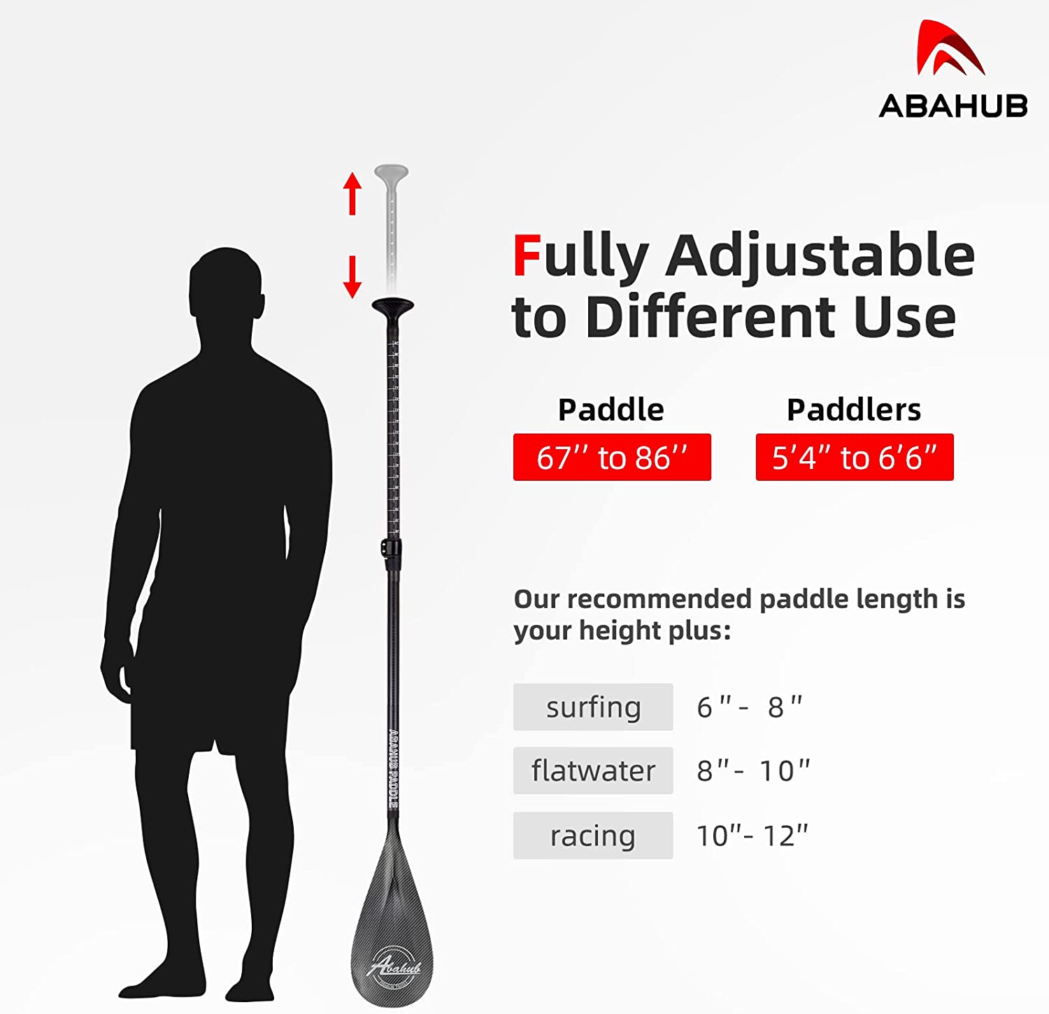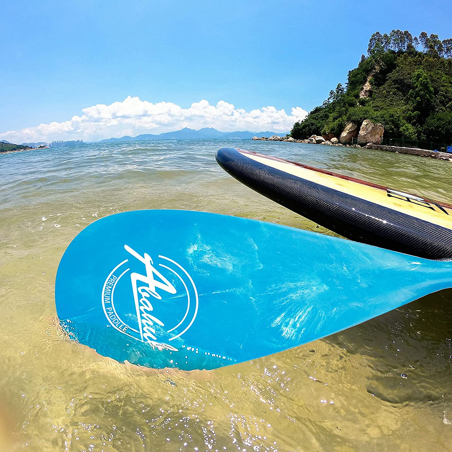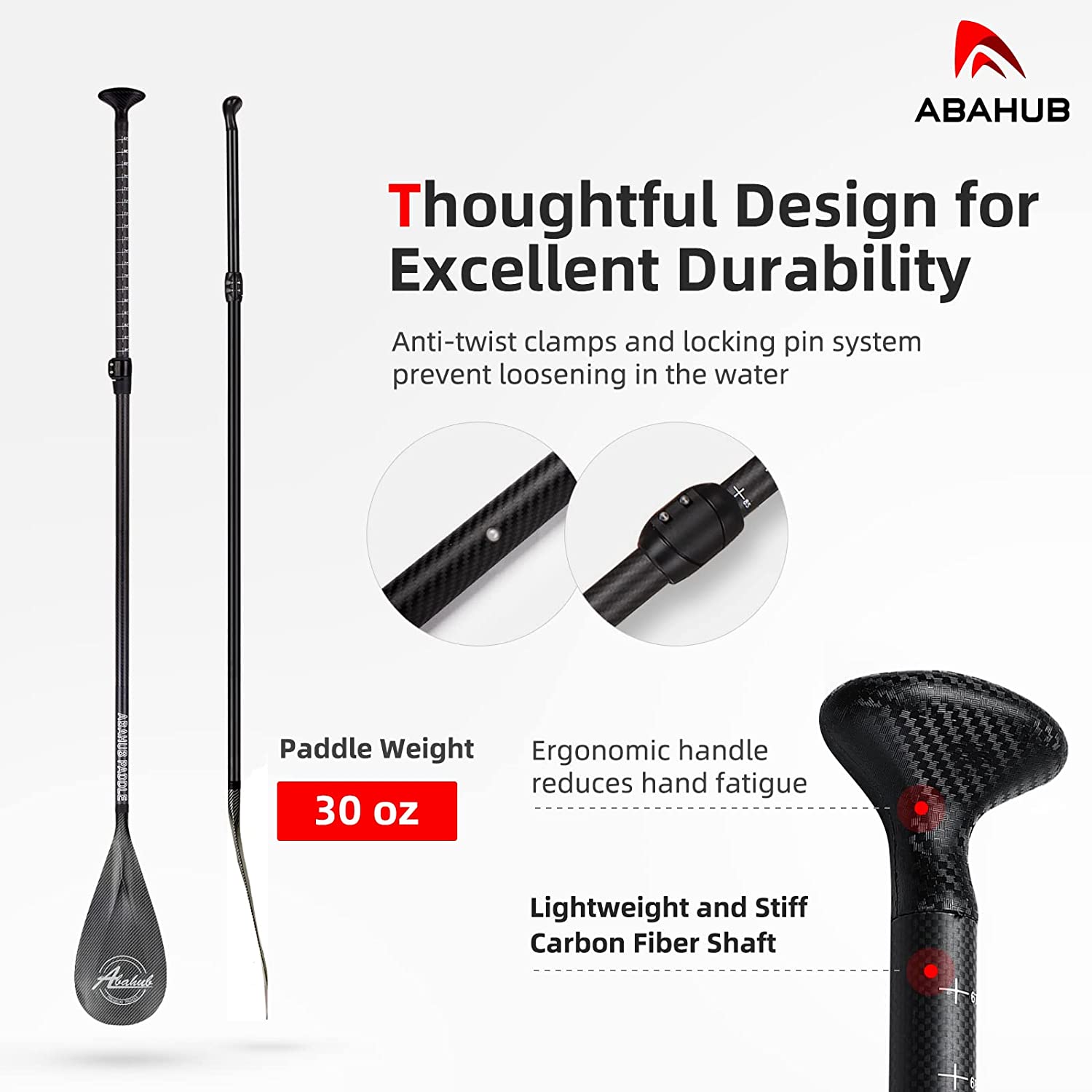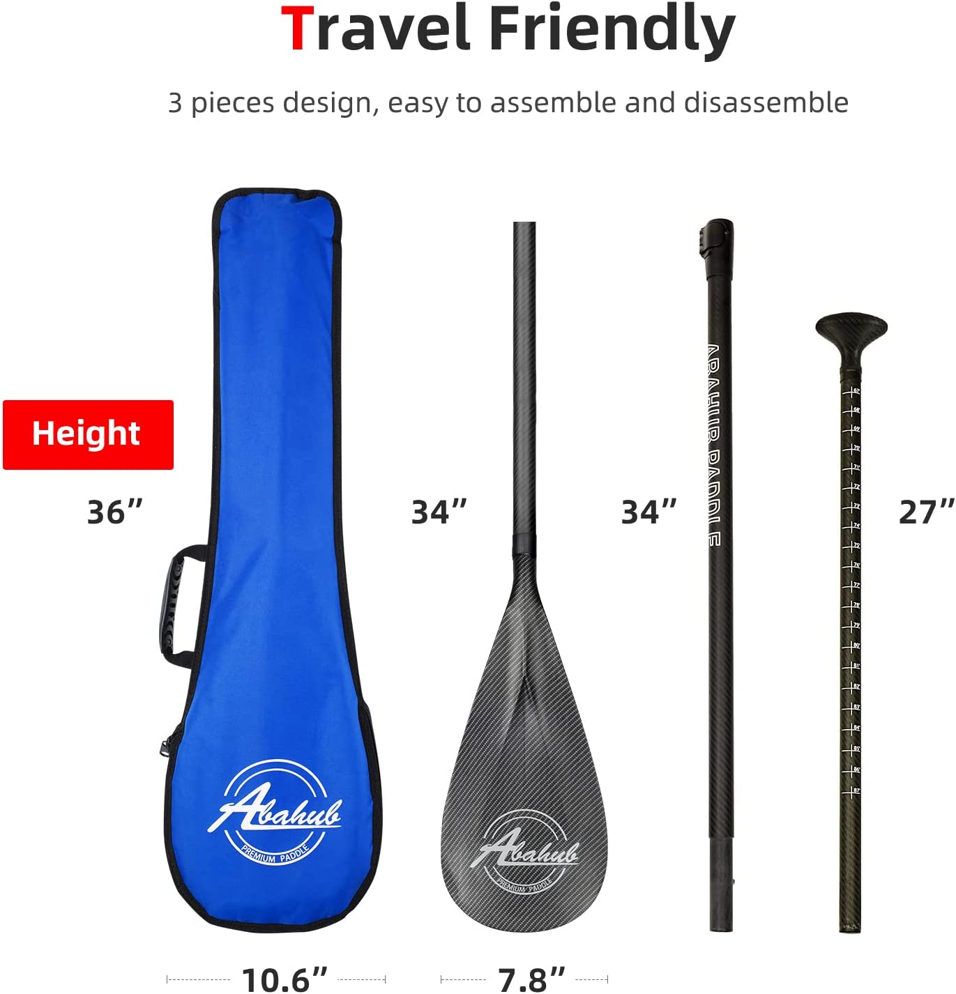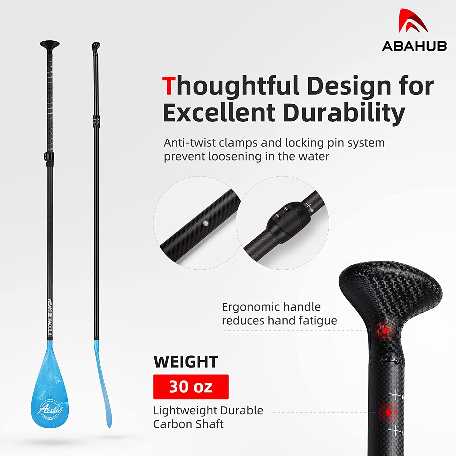 Abahub Carbon SUP Paddles. 1 x 3 Section Adjustable 67″ - 86″. Blue Wave
