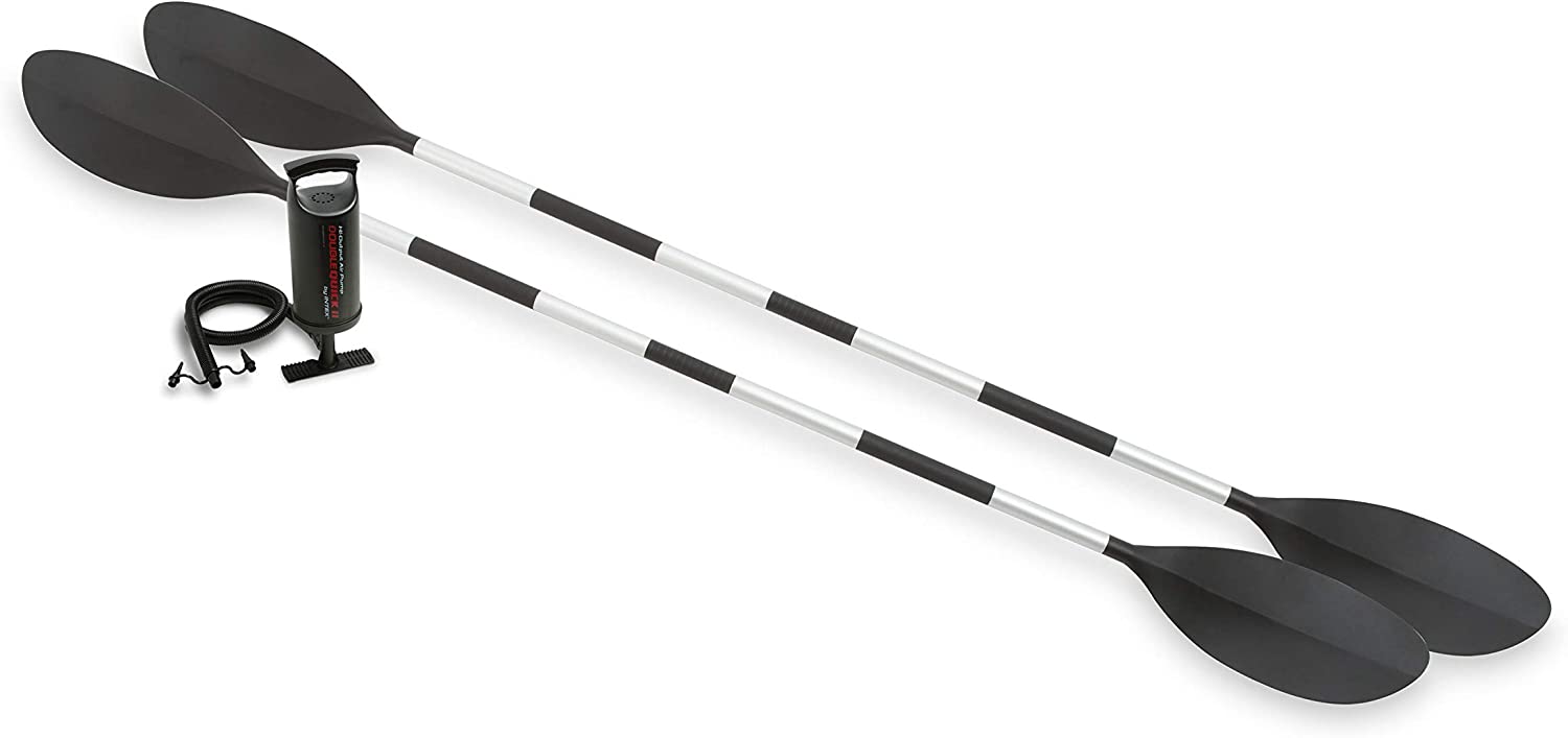 Explorer K2 Kayak. 2-Person Inflatable Kayak Set with Aluminum Oars and High Output Air Pump