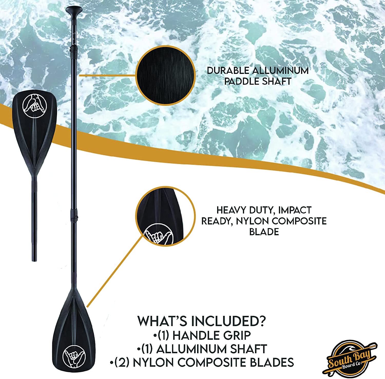 South Bay Board Co. - SUP Paddleboard Paddles - 4-Piece Kayak/Paddle Board Paddle Options - Aluminum Paddle Shafts