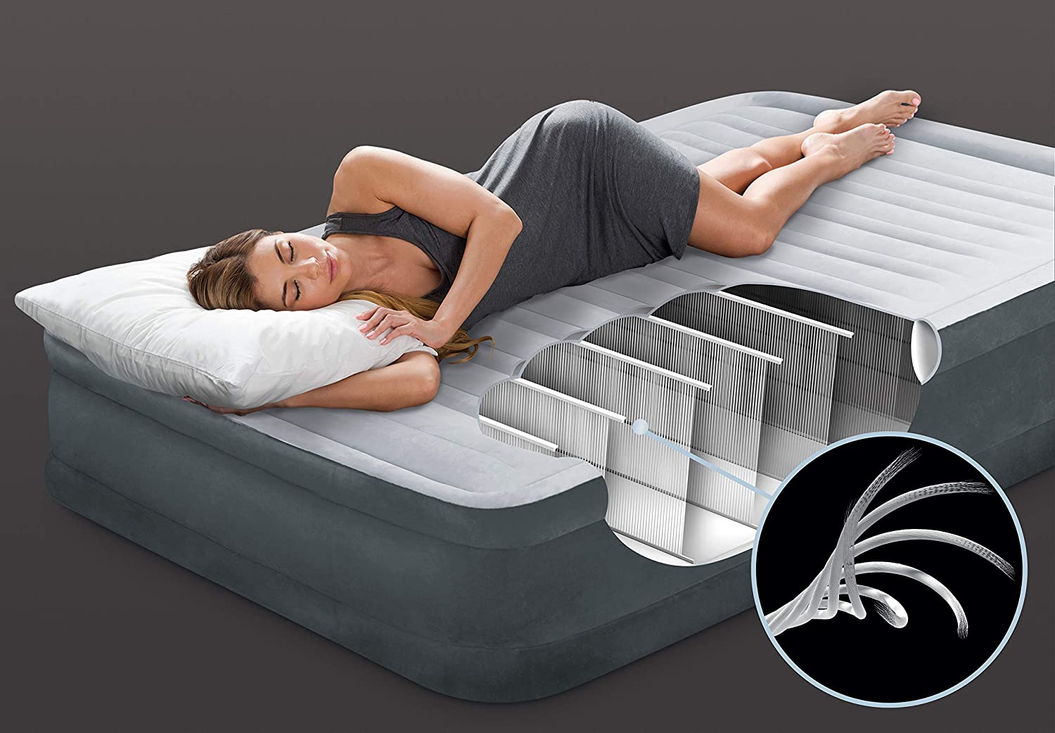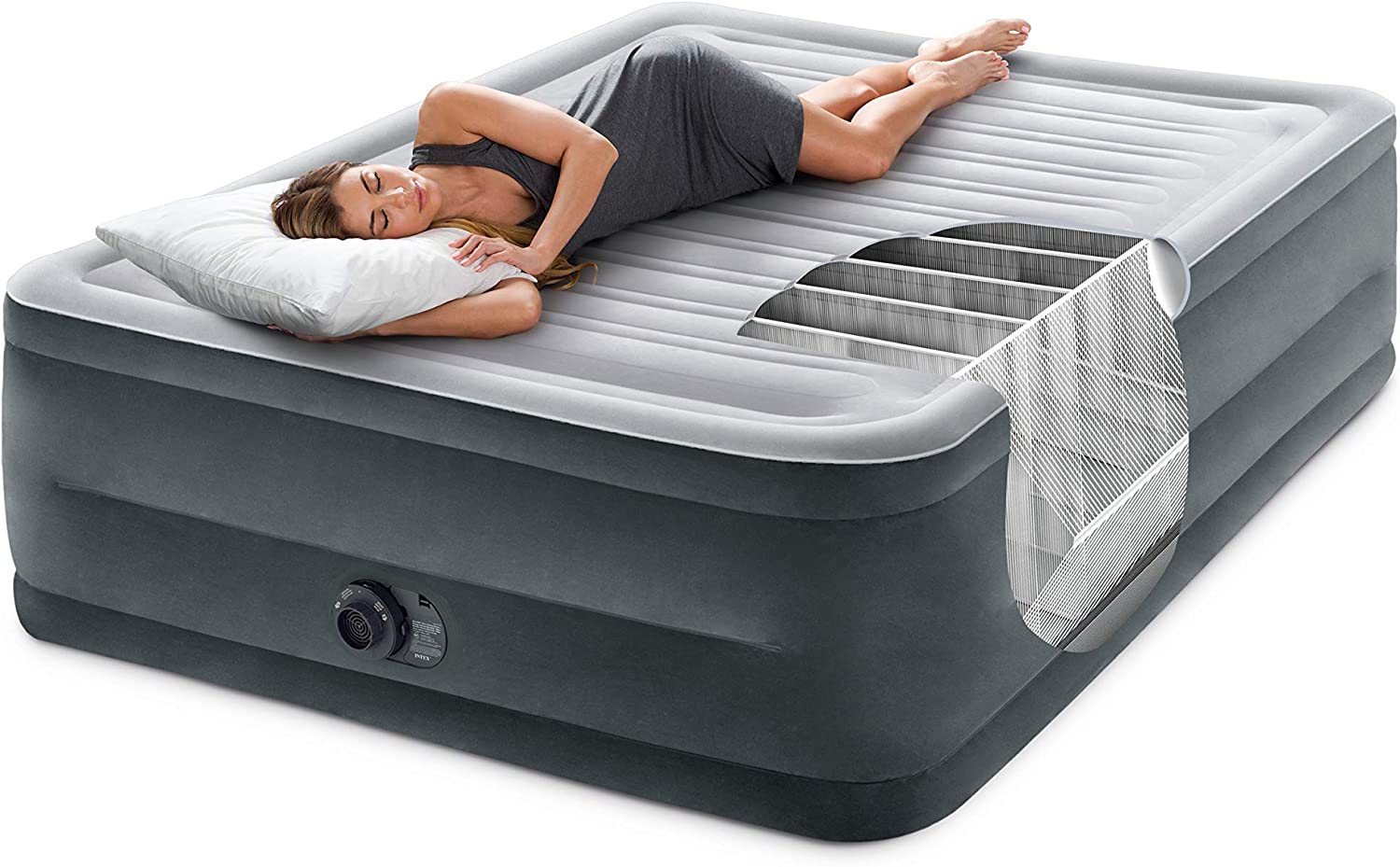 Intex Dura-Beam Deluxe Comfort Plush Air Mattress Series with Internal Pump. Queen. 22 in