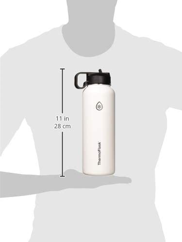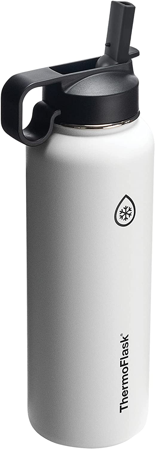 Thermoflask Double Stainless Steel Insulated Water Bottle with Two Lids. 40 oz. White