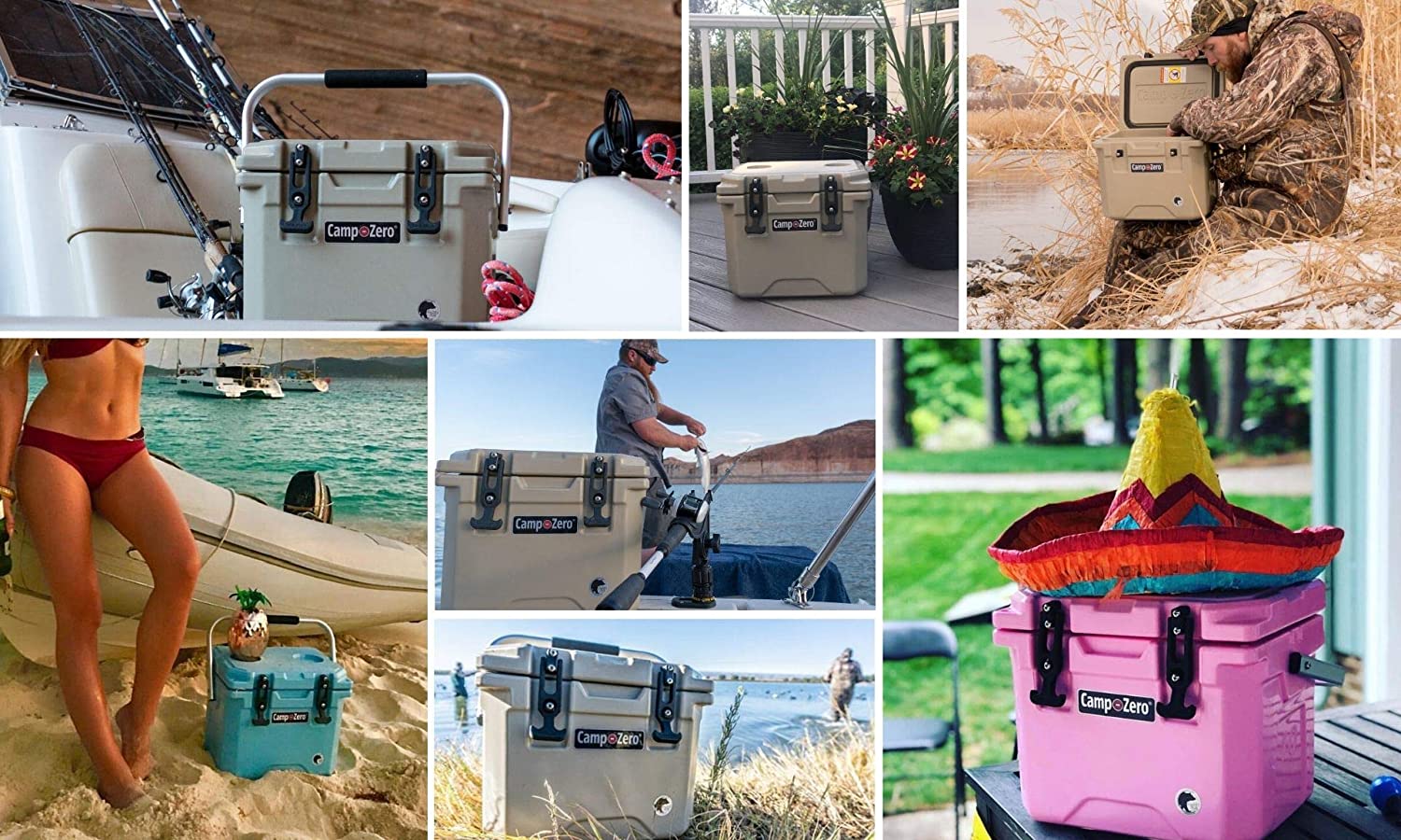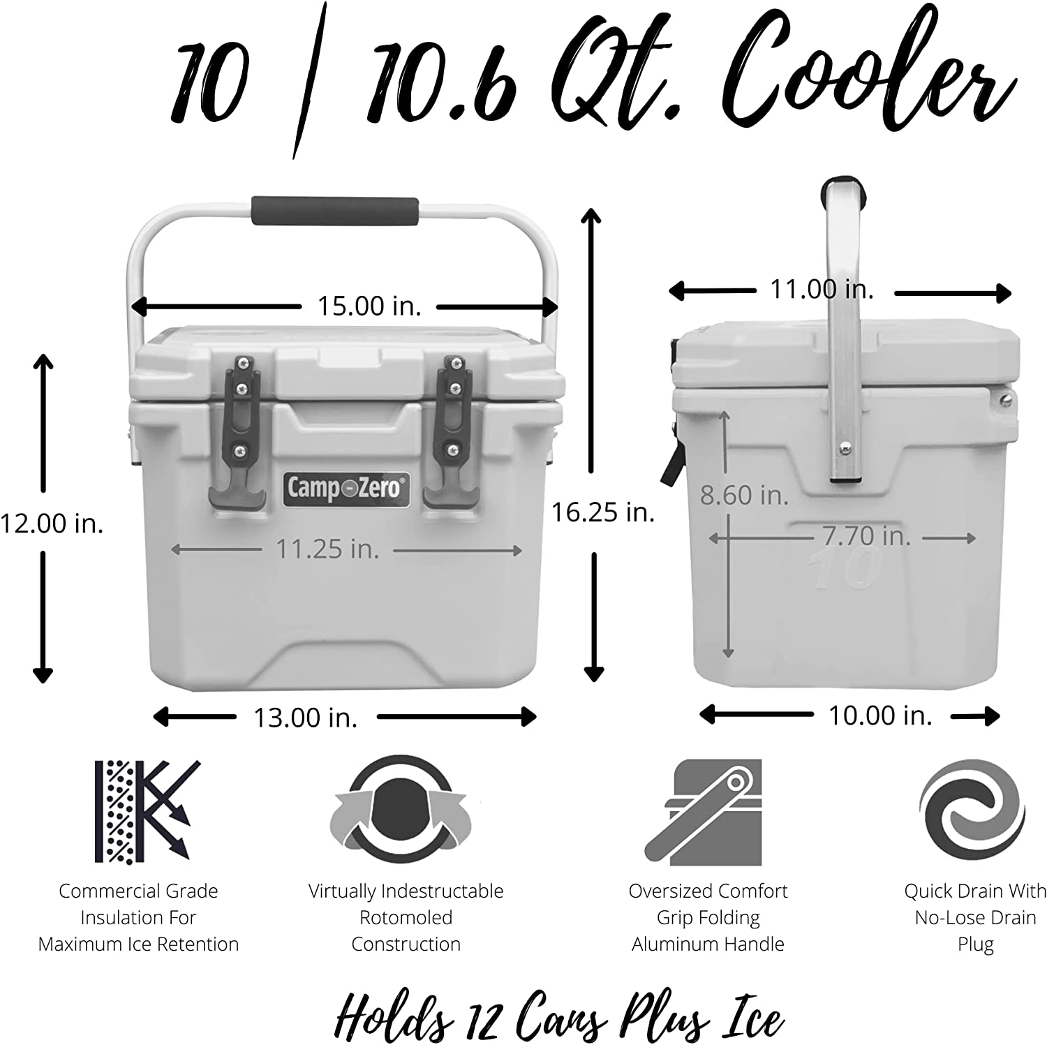 Camp-Zero 10L Premium Cooler | 10.6 Qt. Cooler with 2 Molded-in Cup Holders and Folding Aluminum Handle (Blue)
