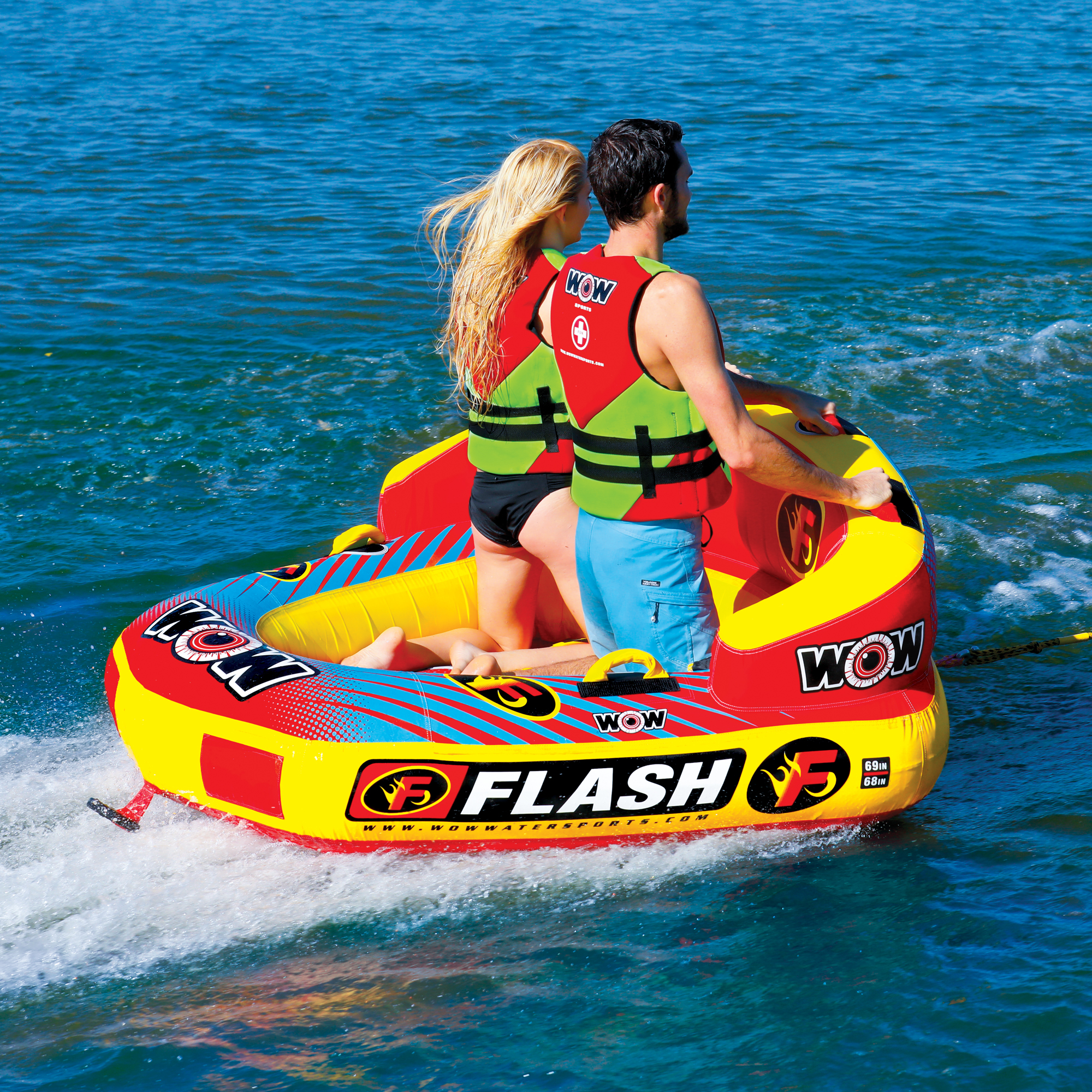 WOW Watersports 1-2 Rider Flash Boating Towable Tube with Secure Cockpit Seating