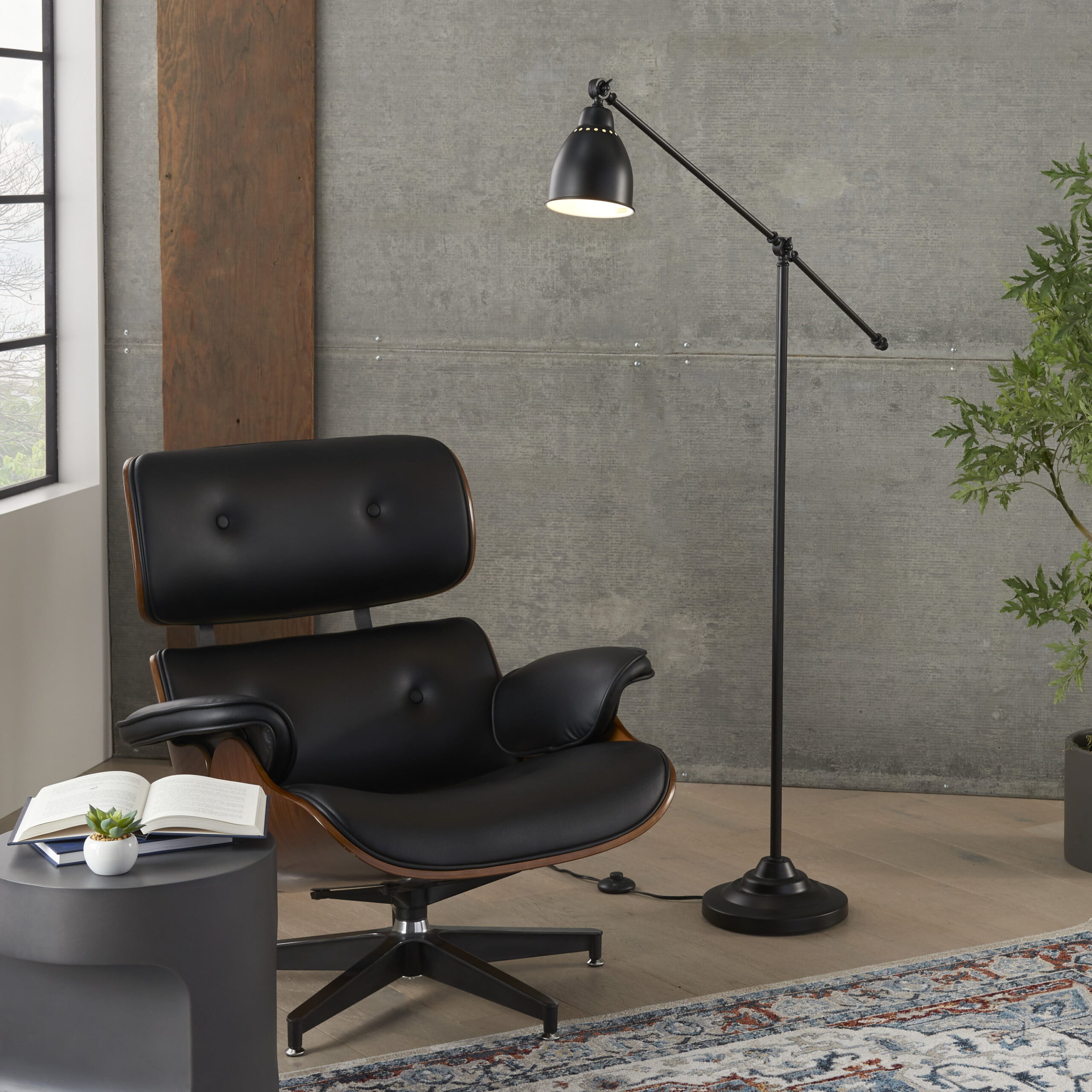 Nourison 54″ Metal Standing Lamp Modern. Contemporary. Industrial for Bedroom. Living Room. Office. Reading. Black