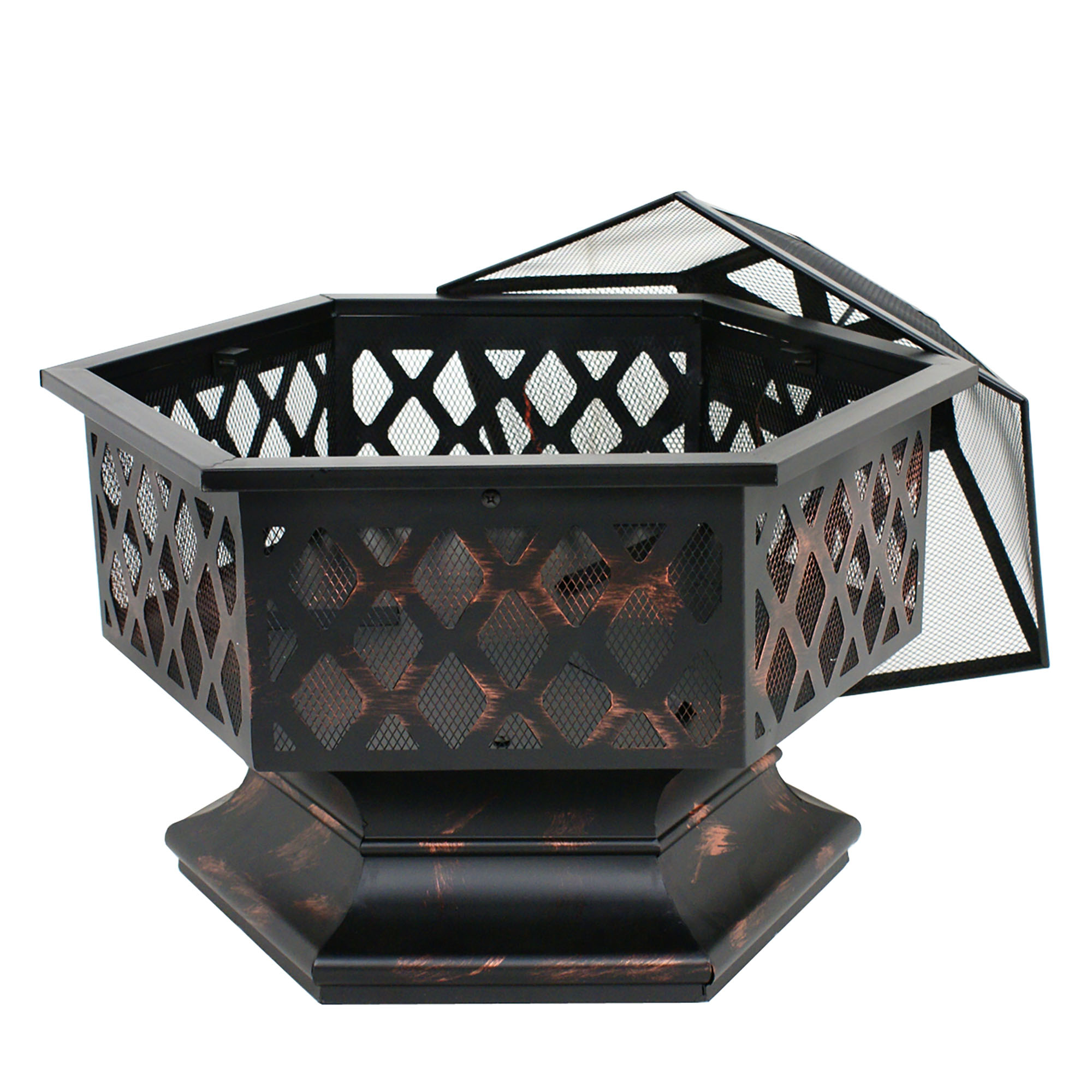 ZENSTYLE Outdoor Patio Steel Fire Pit - 24″ Hex Shaped Backyard Fireplace Wood Burning Firepit Bowl