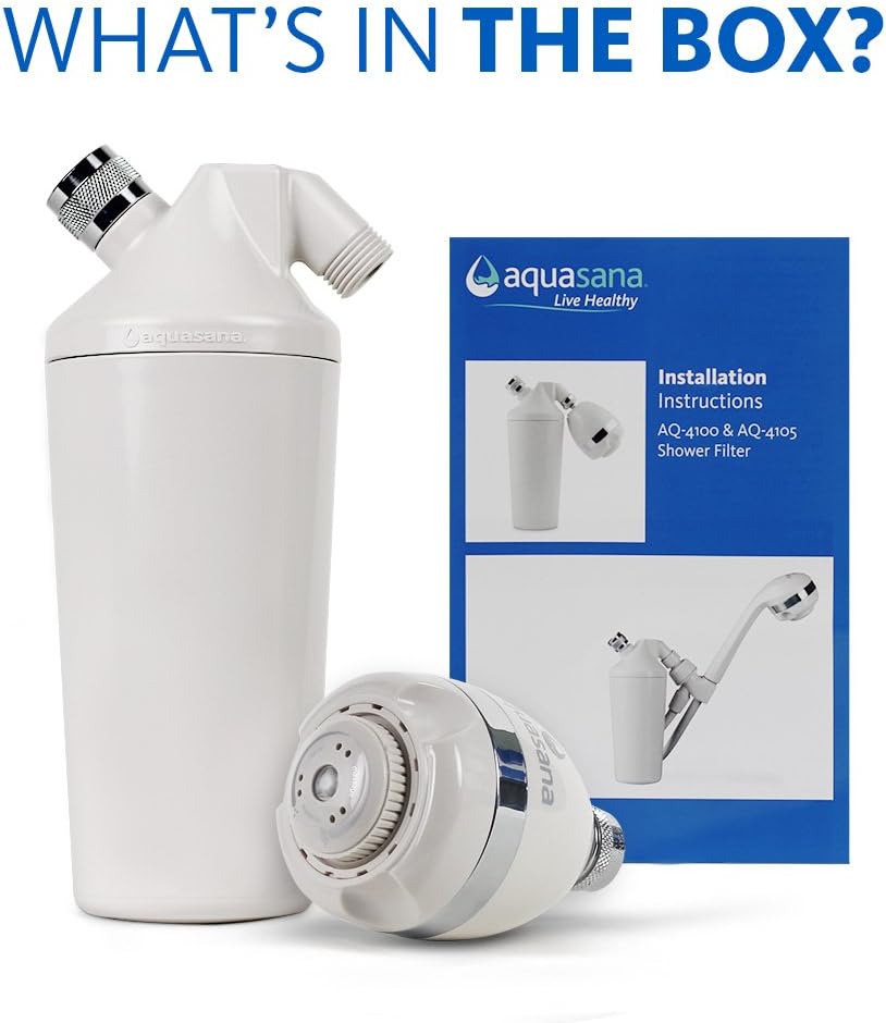 Aquasana Shower Water Filter System Max Flow Rate w/ Adjustable Shower Head - Filters Over 90% Of Chlorine - Carbon & KDF Filtration Media - Soften Skin and Hair from Hard Water - AQ-4100