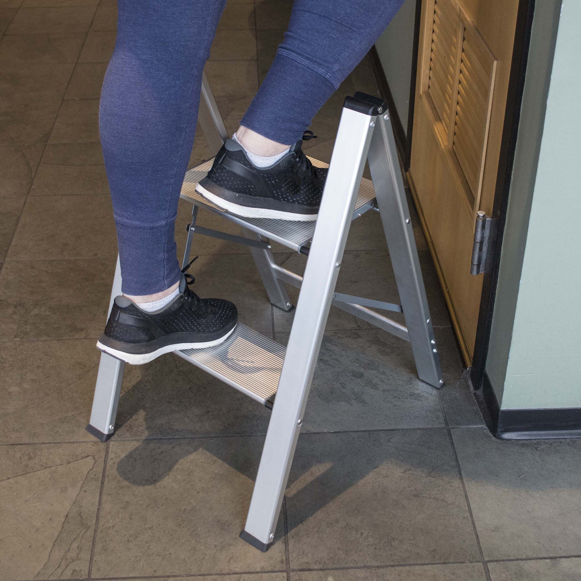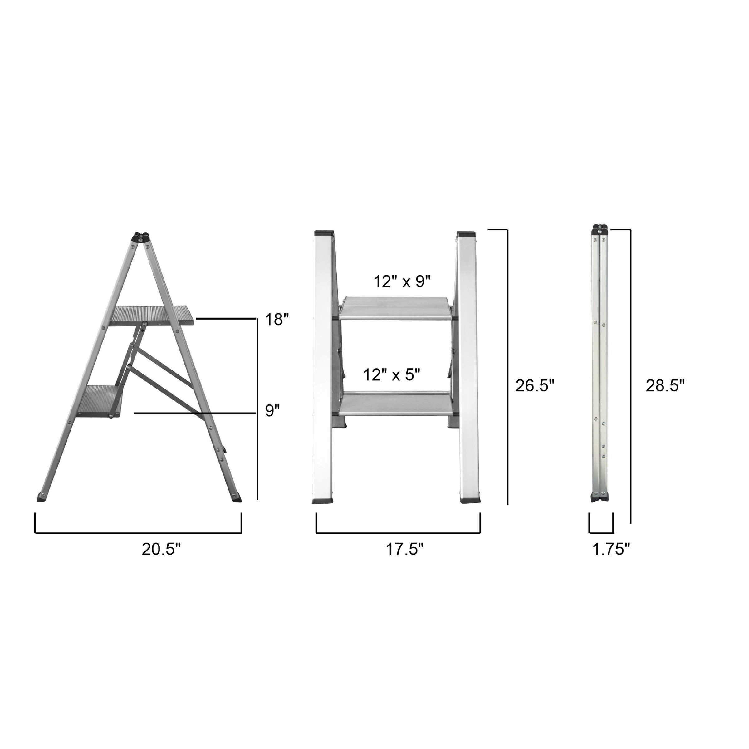 AmeriHome Ultra Slim Aluminum Two Step Folding Utility Step Ladder