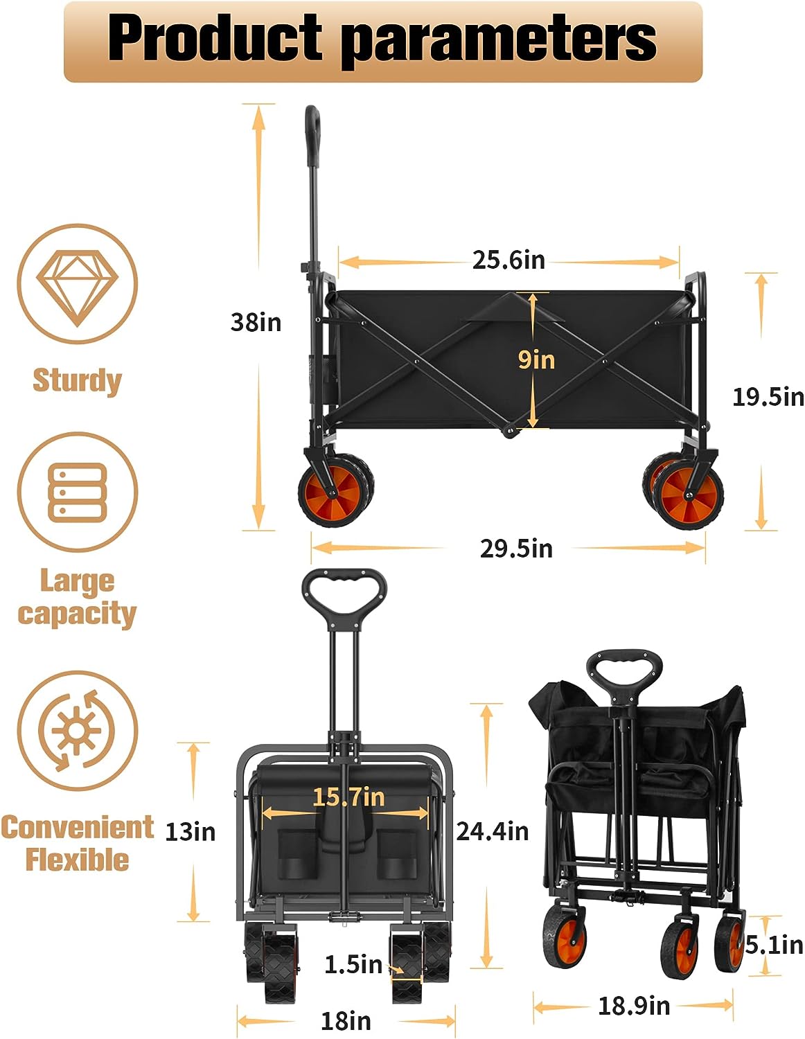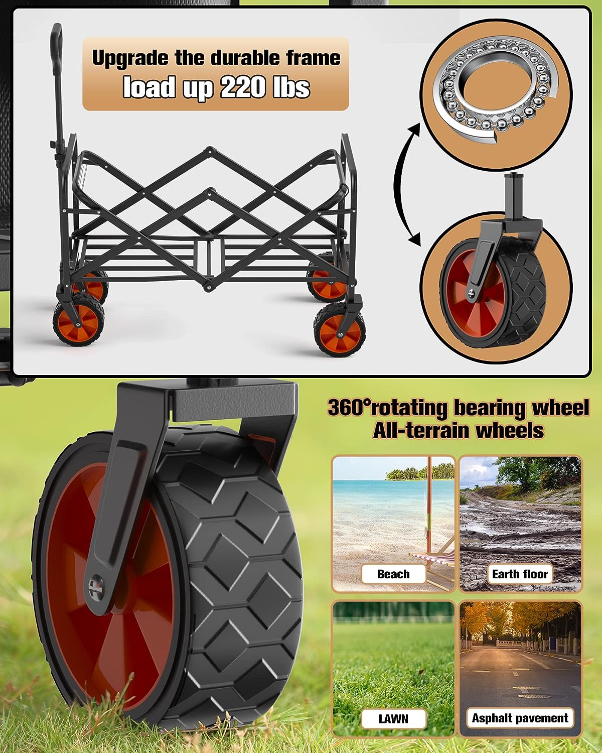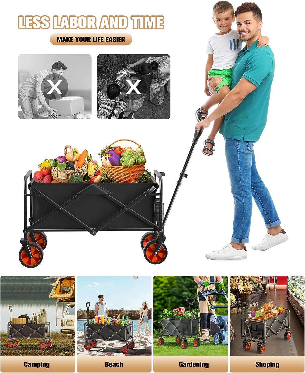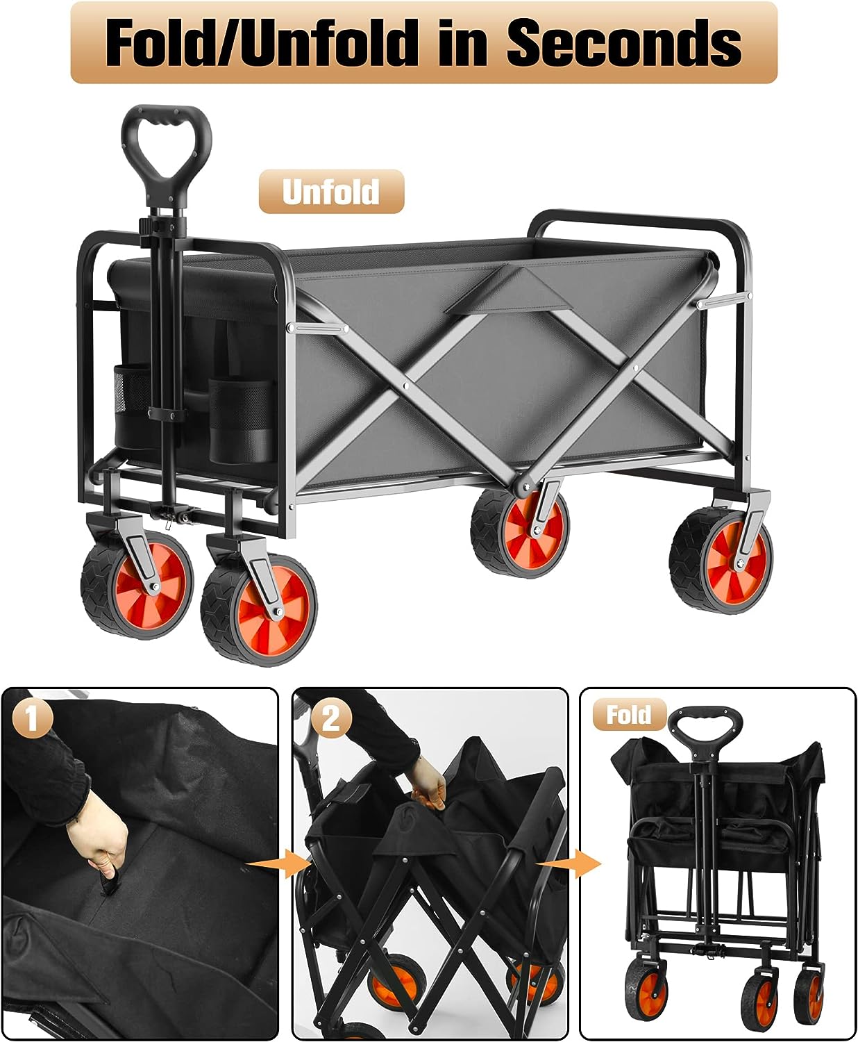 IFOKER Beach Cart Large Capacity. Heavy Duty Folding Wagon Portable.Collapsible Wagon for Sports. Shopping. Camping