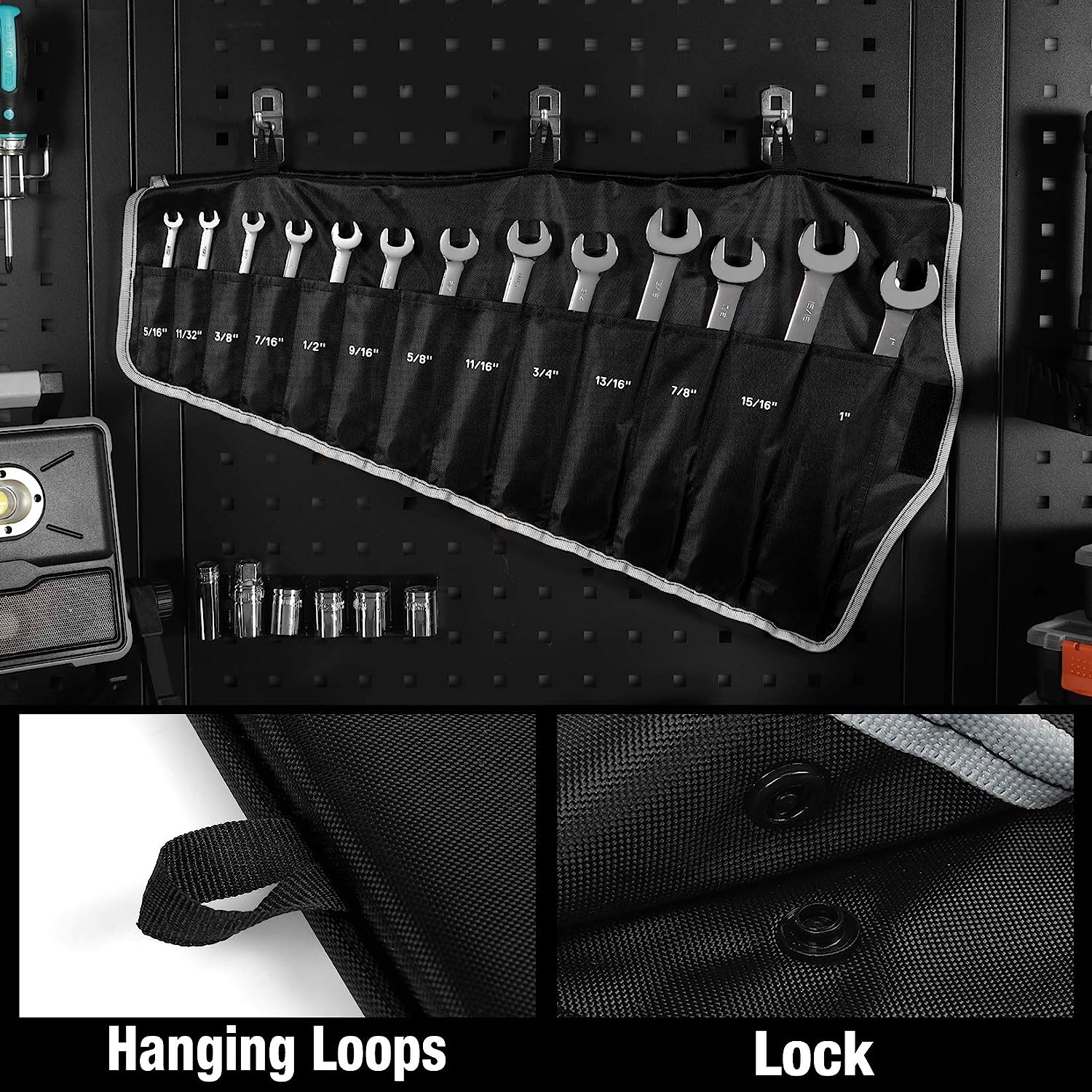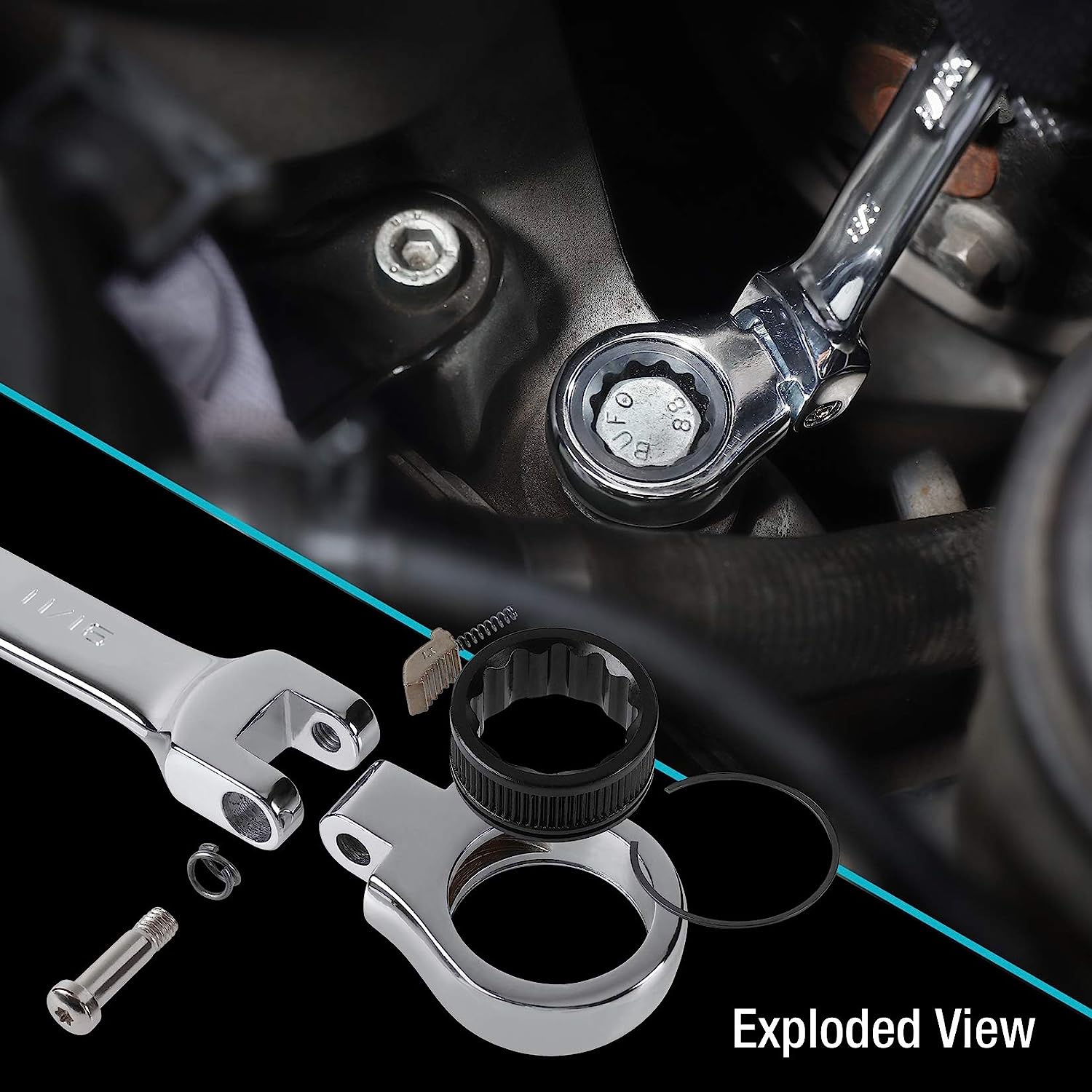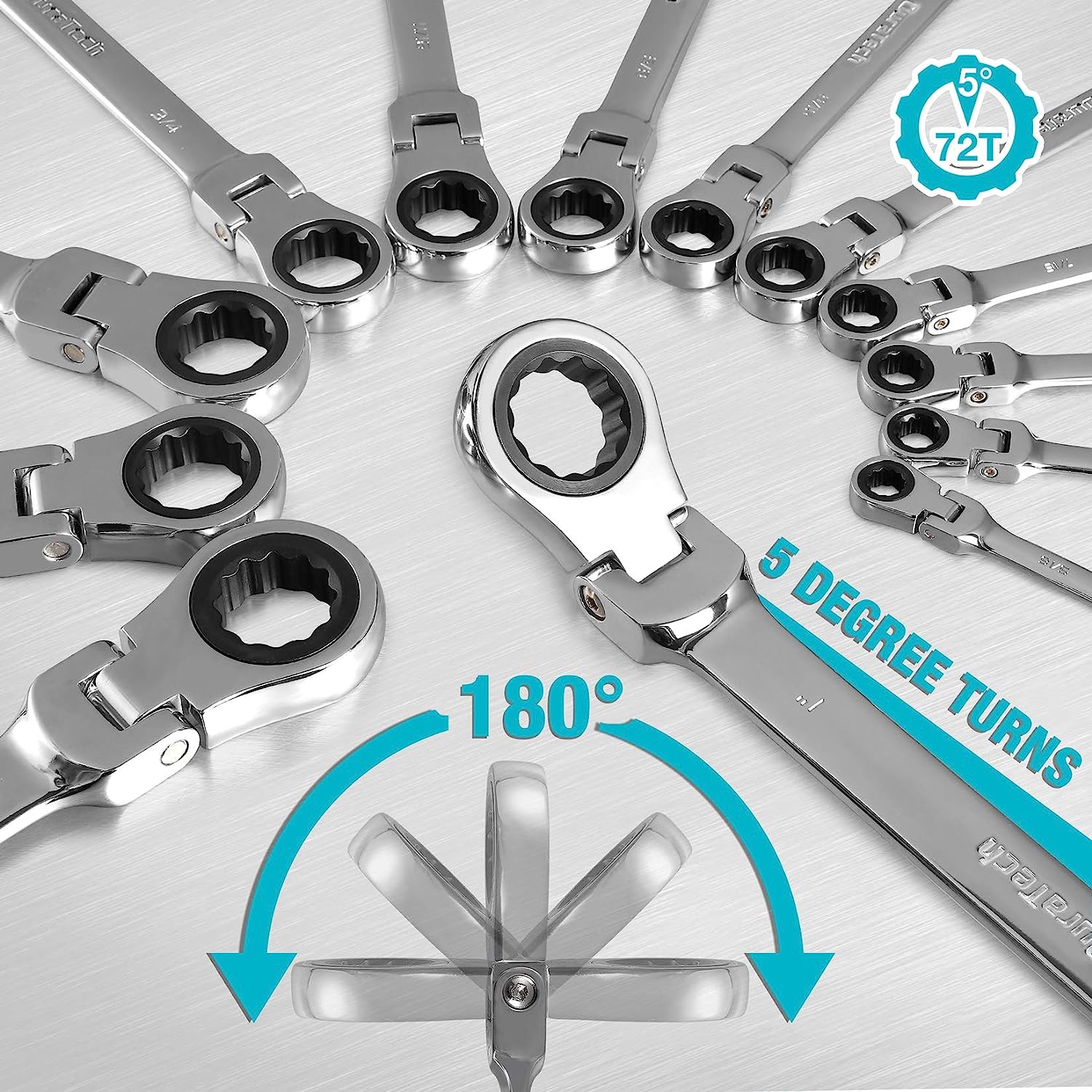 DURATECH Flex-Head Ratcheting Combination Wrench Set. SAE. 13-piece. 5/16” to 1”. CR-V Steel. with Rolling Pouch
